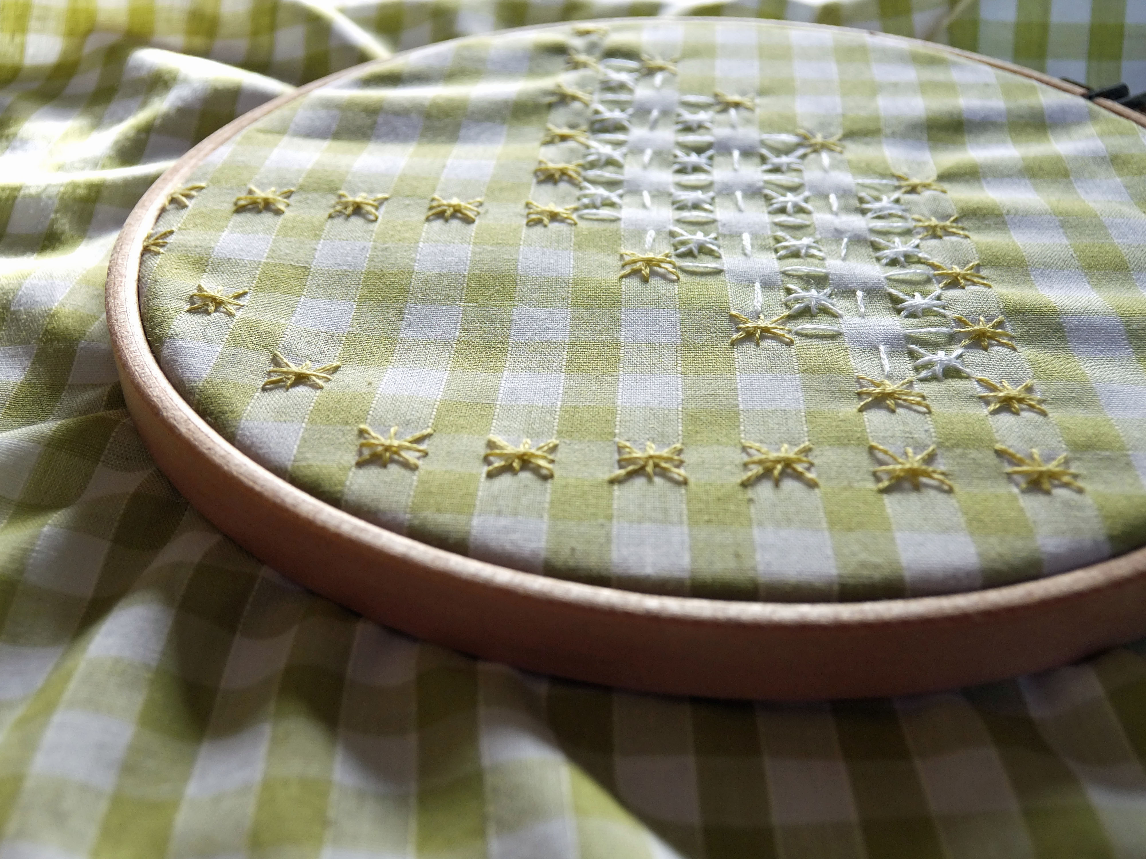 A group of us attended a mini-workshop today at the home of Charlotte Robinson to learn a bit of chicken scratch embroidery.