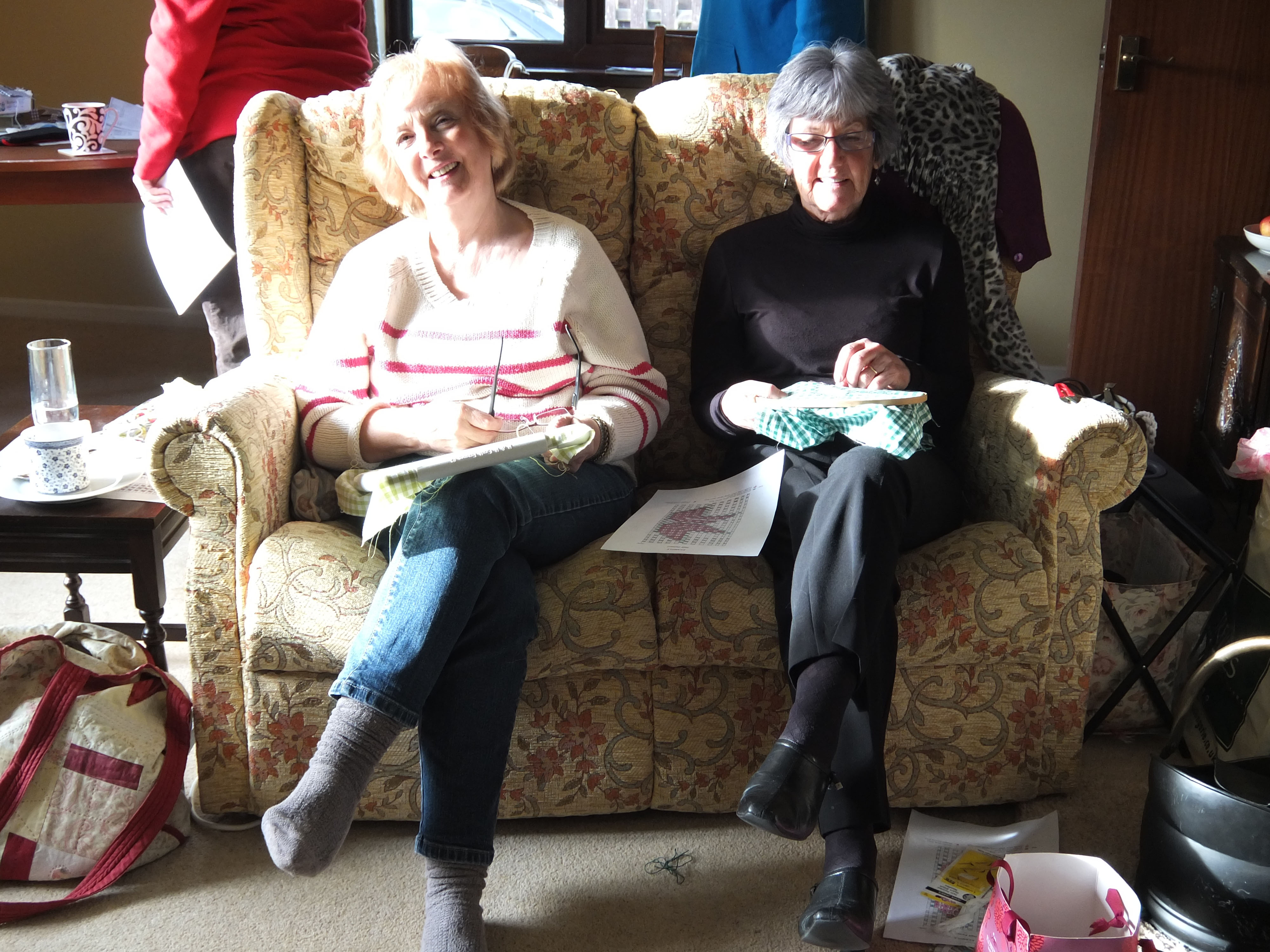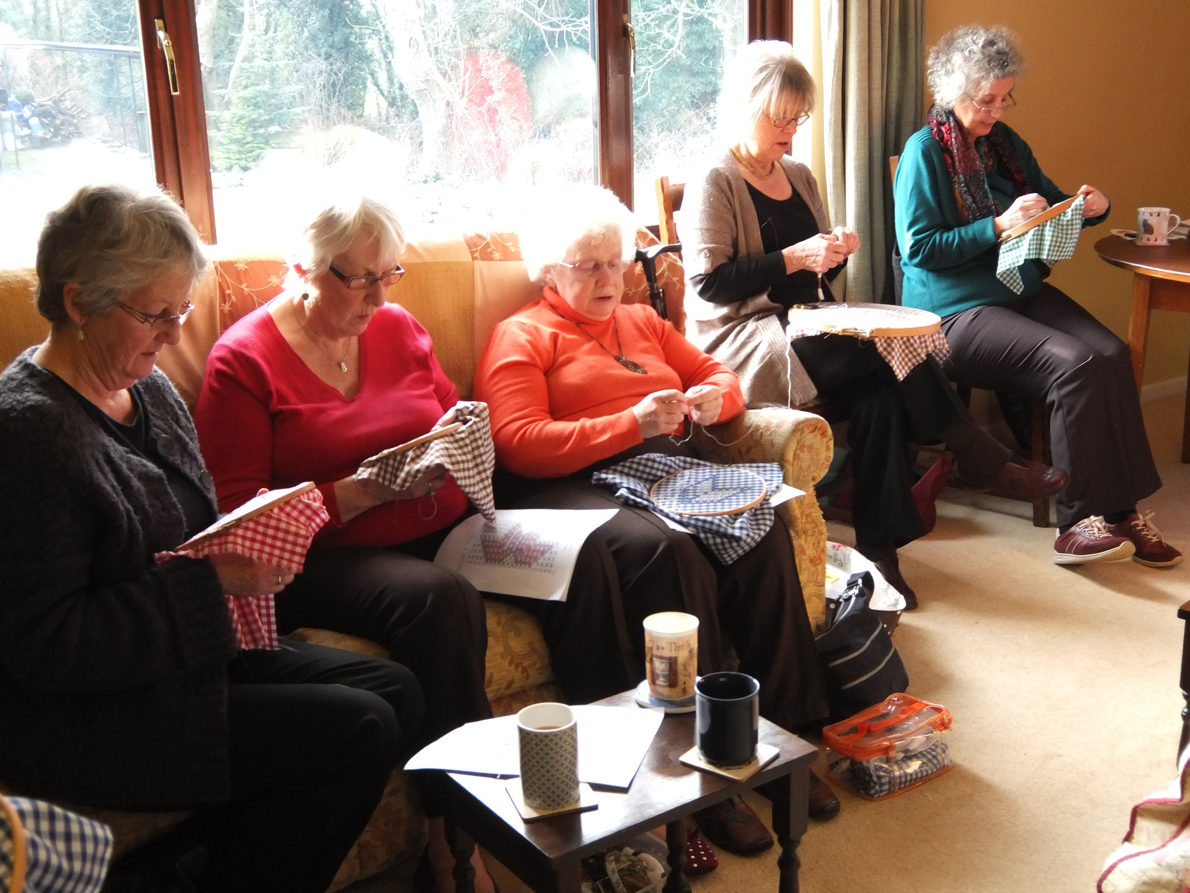 Under the expert tutelage of Gail Allen and Charlotte, we all stitched away at our bits of gingham, learning a basic but lovely star pattern. With a quick break for lunch and some delicious cake courtesy of Lis Davies, we were back at it again very quickly in the afternoon!