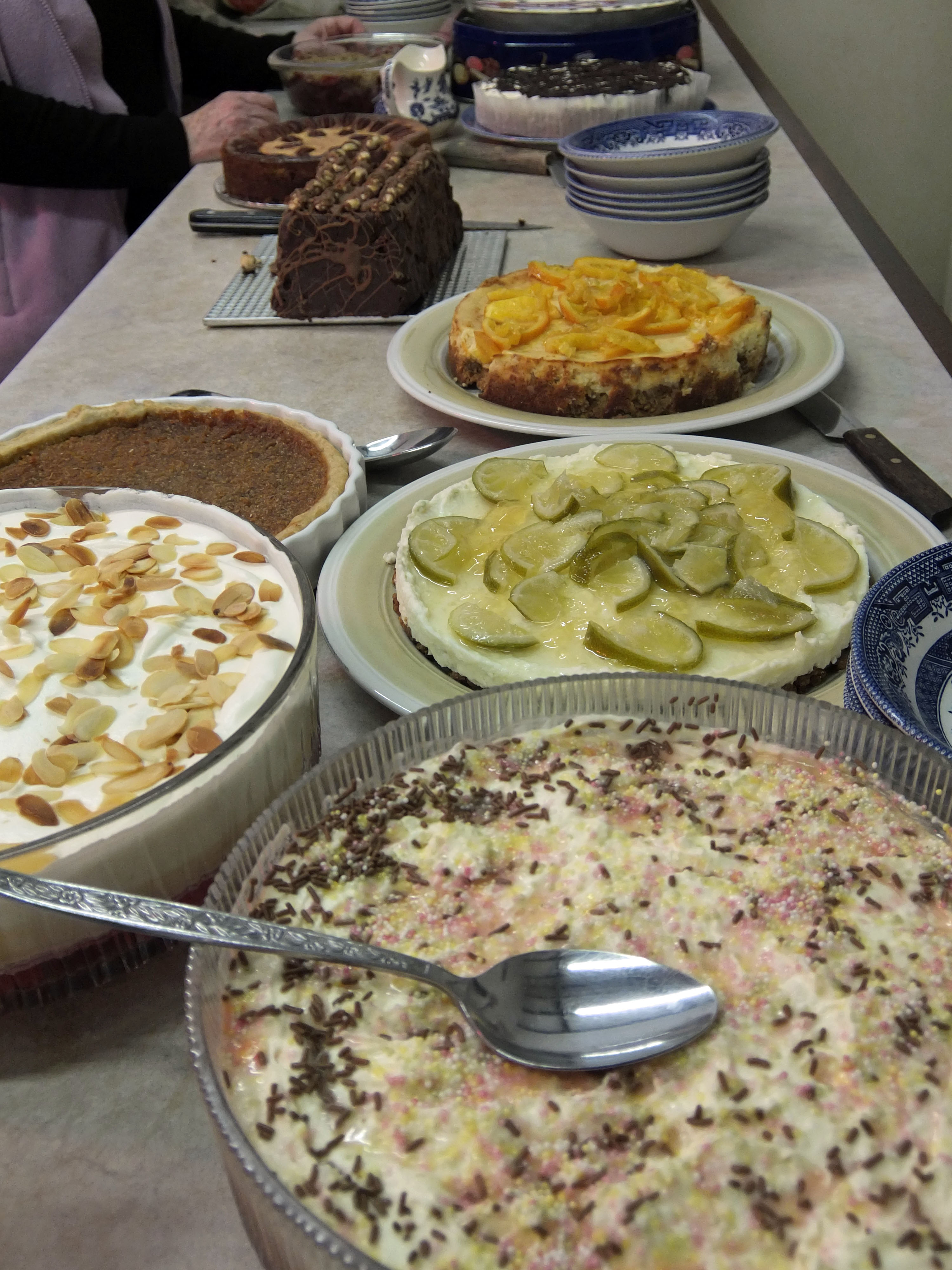 After a delicious meal of chicken or homity pie and peas, we were all tempted by a mouth-watering array of desserts.