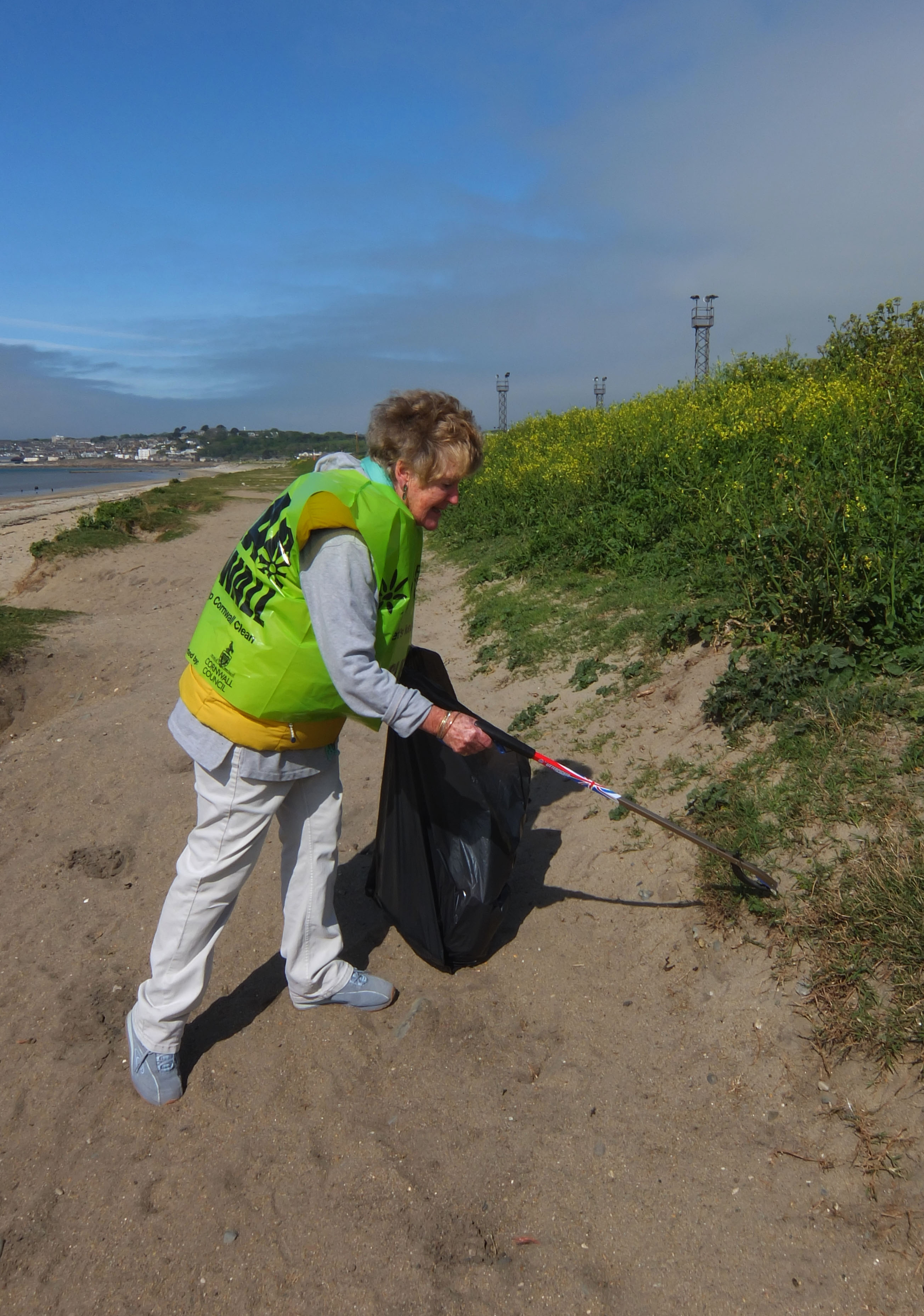 This morning, a group of us faced the blustery wind and set off for Long Rock car park and beach to do some litter picking with Clean Cornwall.