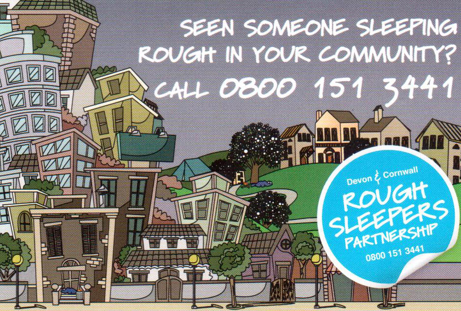 If you happen to see anyone sleeping rough or someone you think is in need of assistance, please contact the Devon and Cornwall Rough Sleepers Partnership as soon as you can.