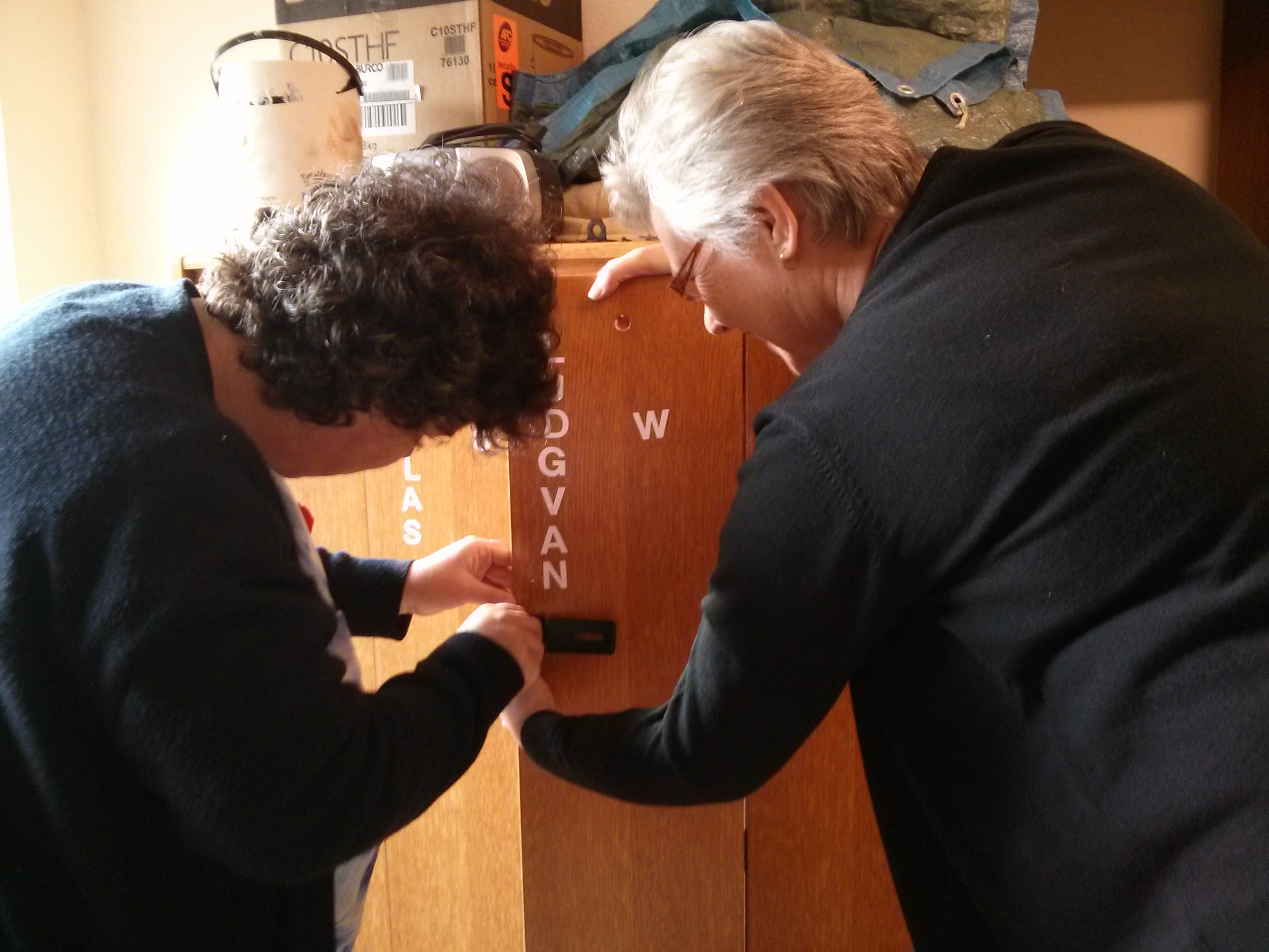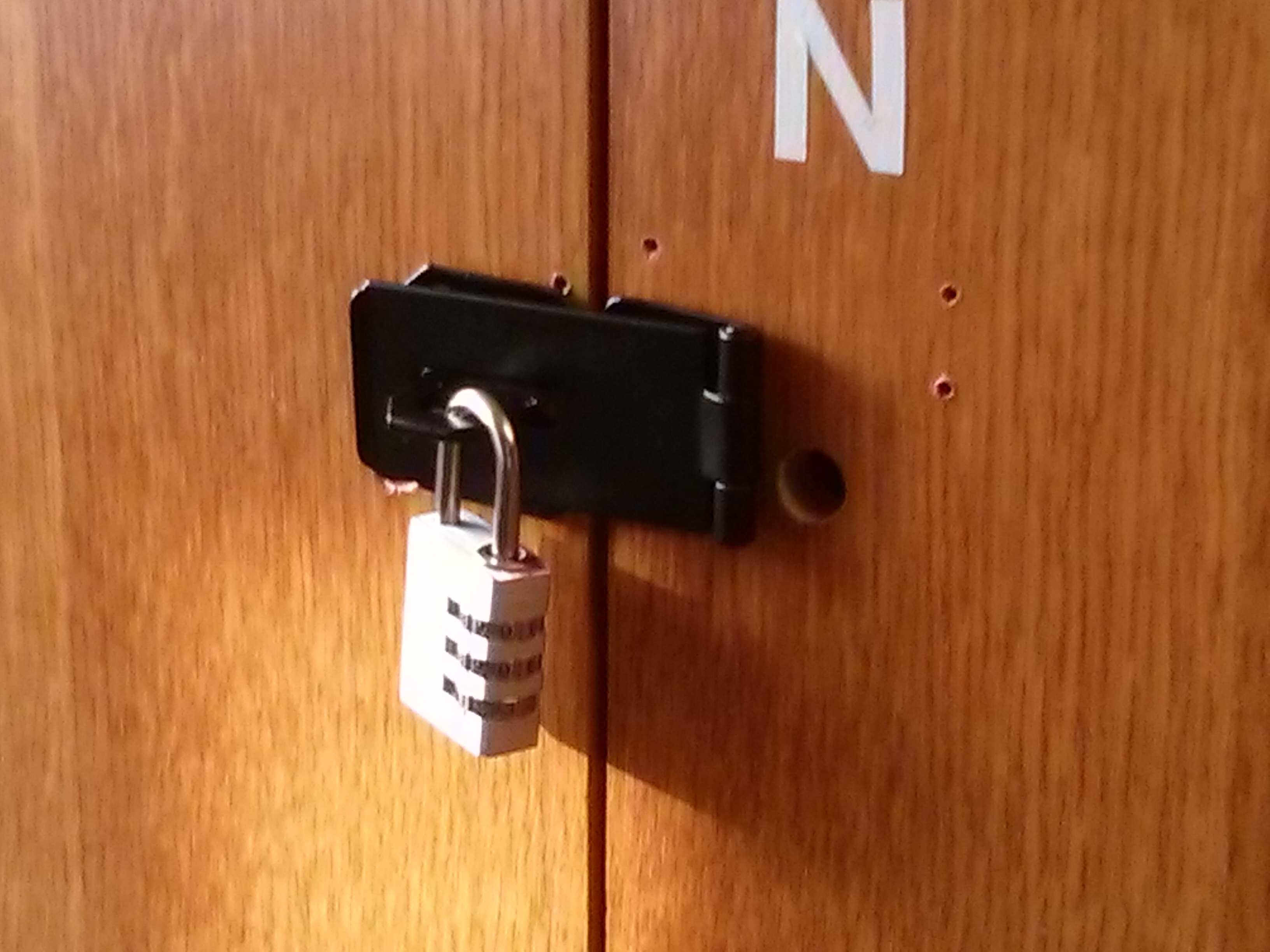 Armed with a very pink tool kit, the ladies fixed a sparkly new hasp and lock! Our supplies should be nicely secure from now on.