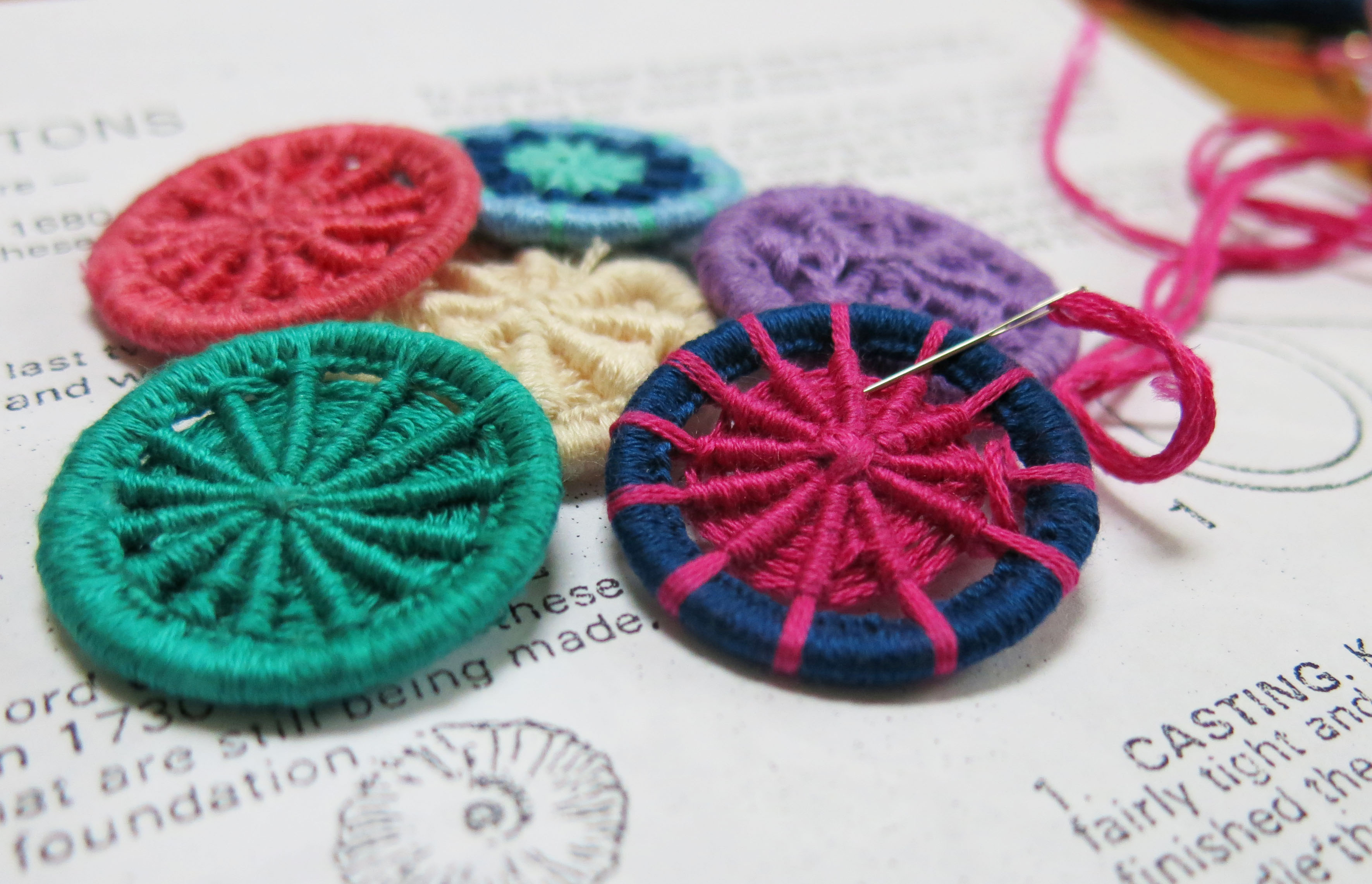 If you’ve not heard of Dorset buttons, they’re hand-made buttons which were popular from the early 17th century until they were rendered obsolete by machine-made buttons in the mid-19th century.