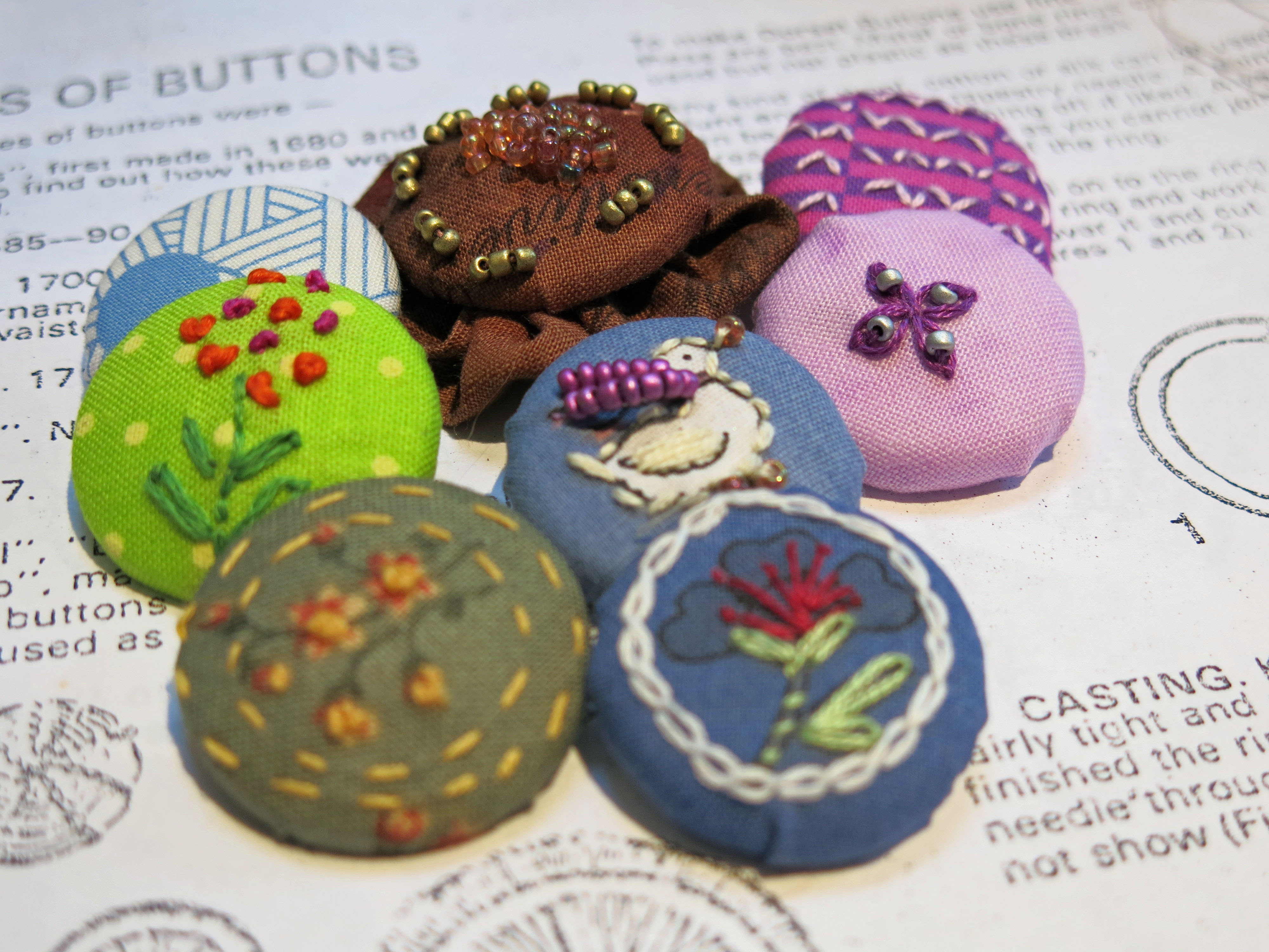 After a lunch break and a lot of laughing, we turned our attention to traditional fabric buttons in the afternoon. Embellished with embroidery and beads, they were really lovely.