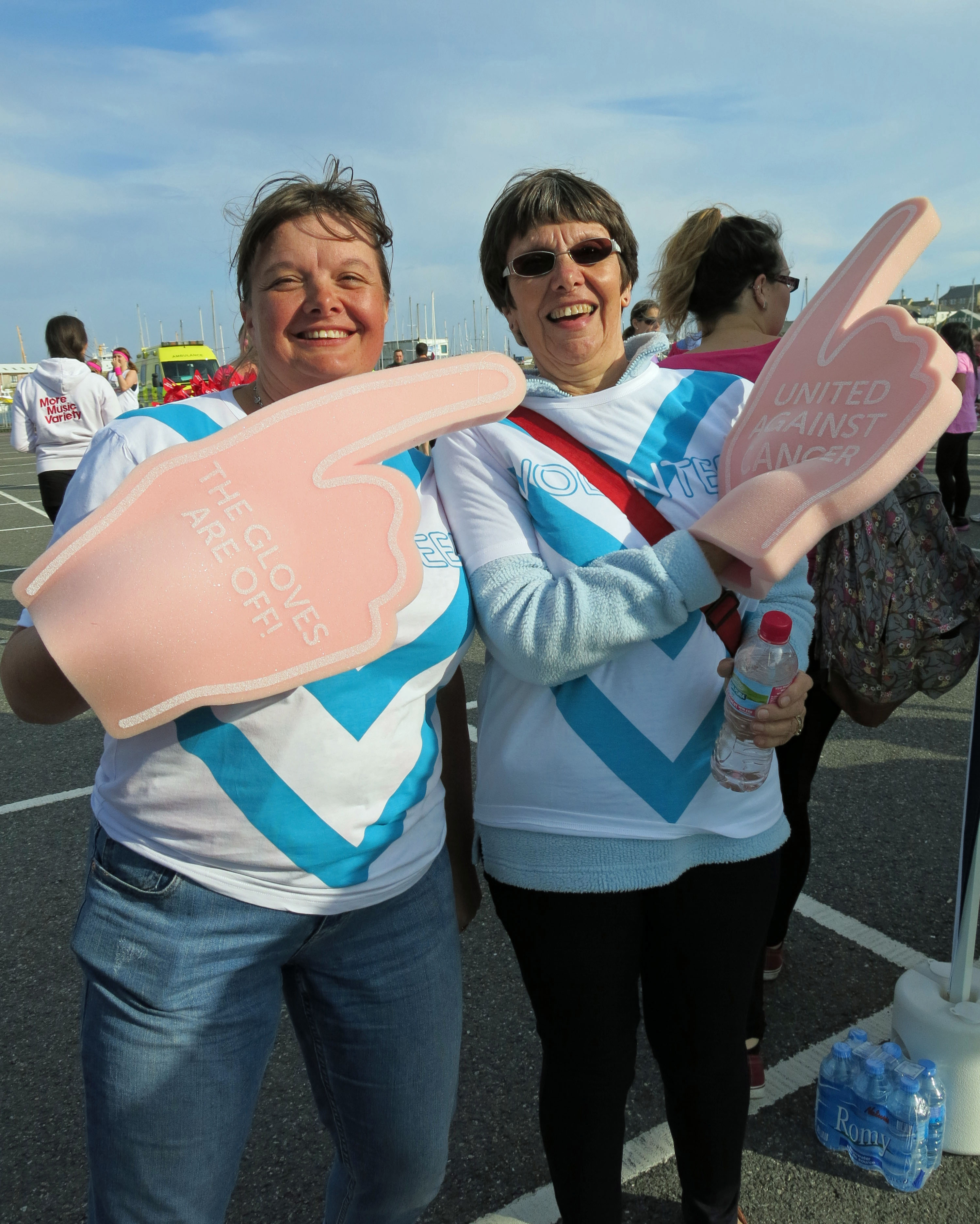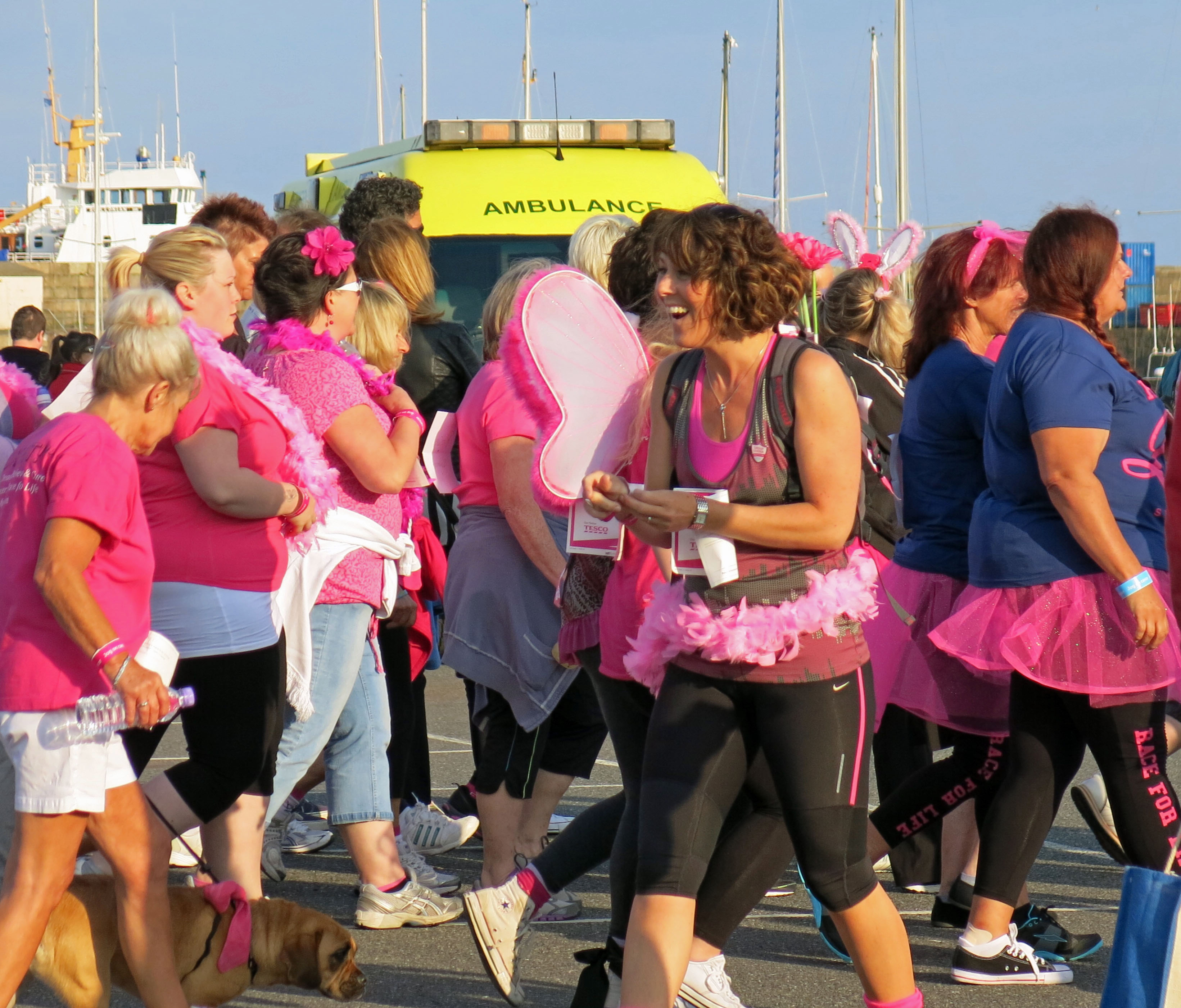 There was a sea of pink this evening on the Penzance harbourfront as Julie Blewett, Helen Kestle, Pippa Lilley and Beth Marshall (along with Beth’s daughter Sam who’s visiting for the week) volunteered at Cancer Research UK’s Race for Life.
