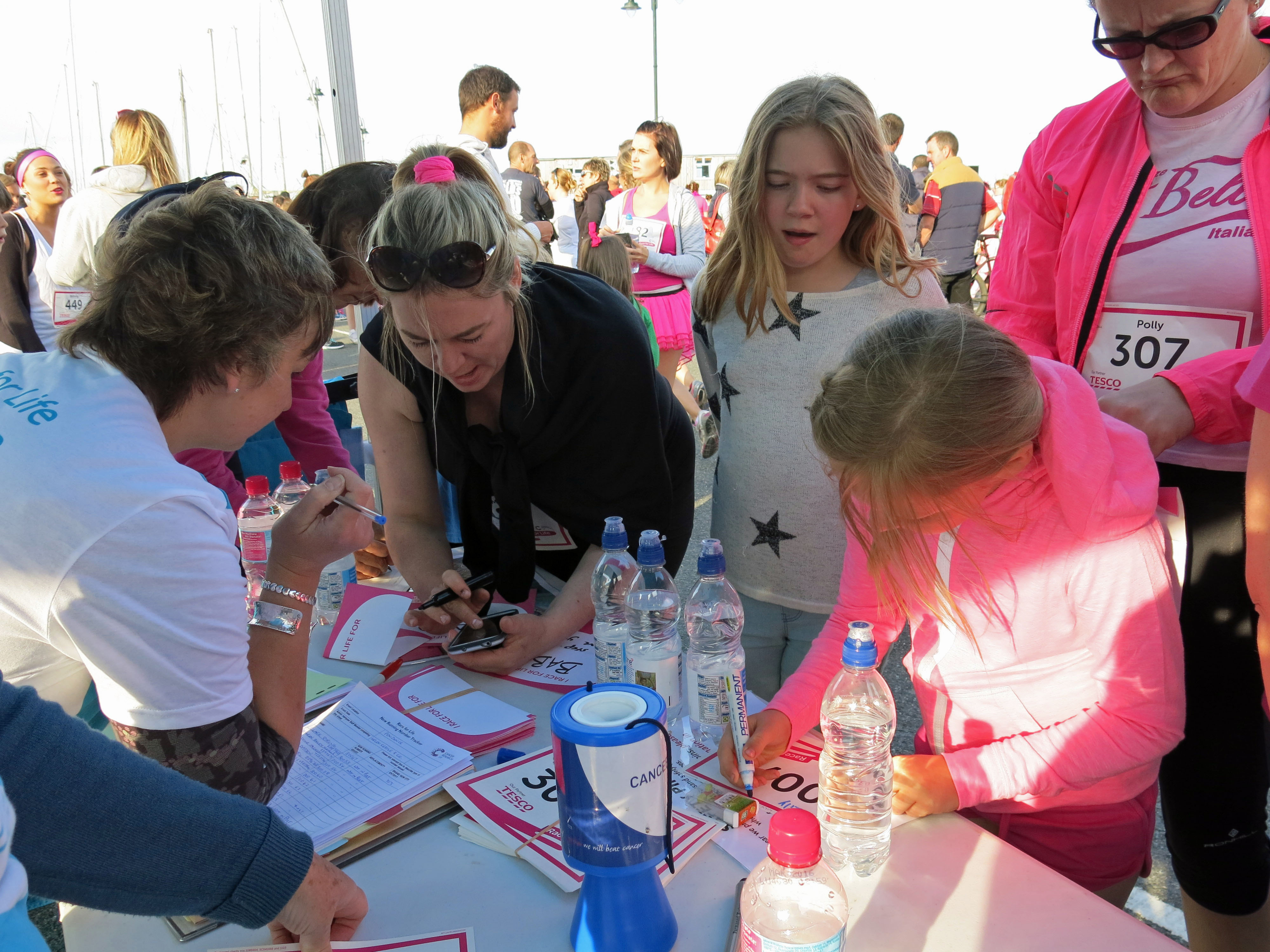 We arrived early and were briefed on our role working in the Admin Marquee. Our job involved signing in any racers who didn’t have numbers, answering all sorts of questions from the public and guarding our box of safety pins very carefully!