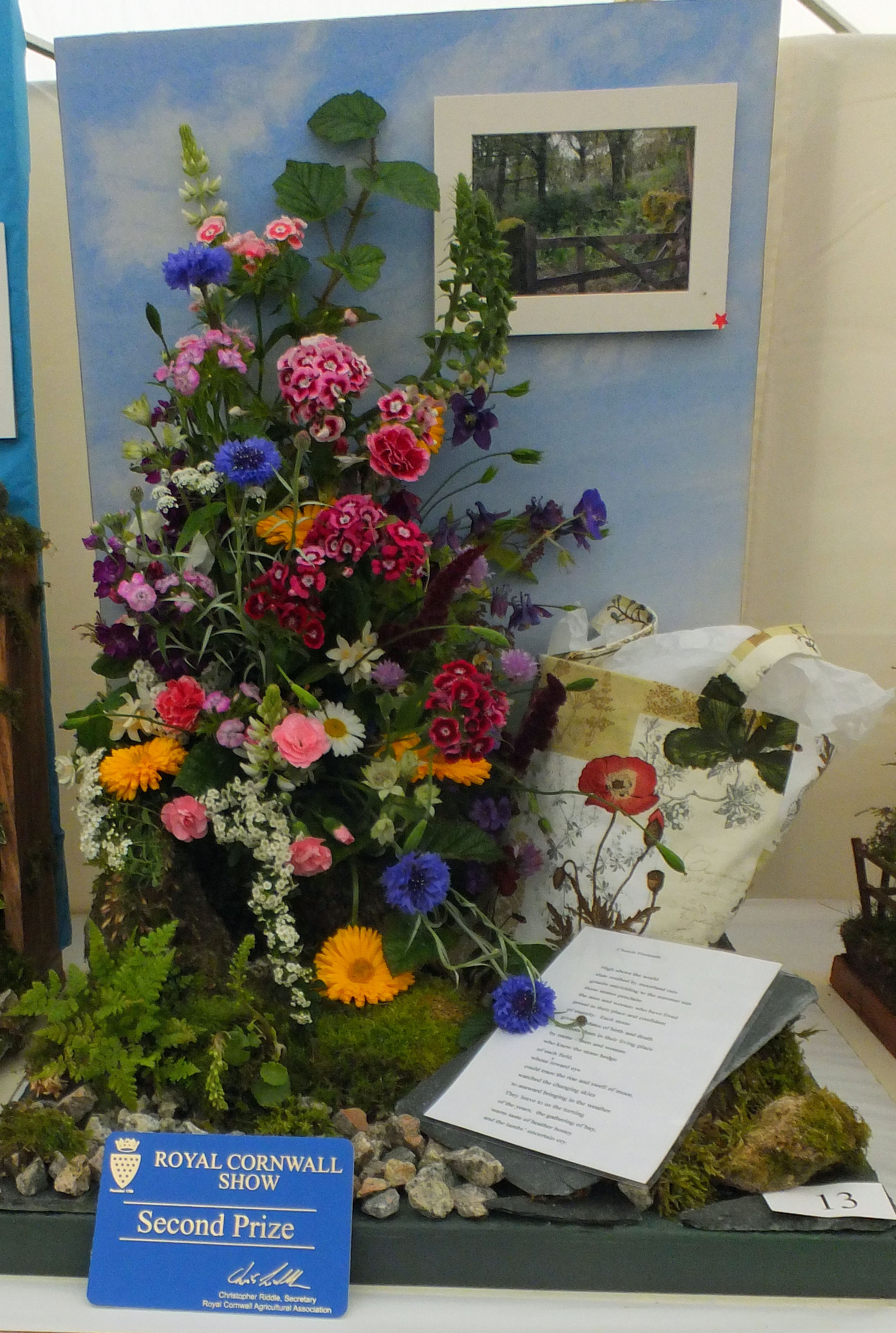 The four elements of the exhibit were cookery (an item of Cornish fayre to sustain you on your walk), a craft item for your walk, a photograph of a gate along your walk and a floral arrangement to depict a cottage garden.