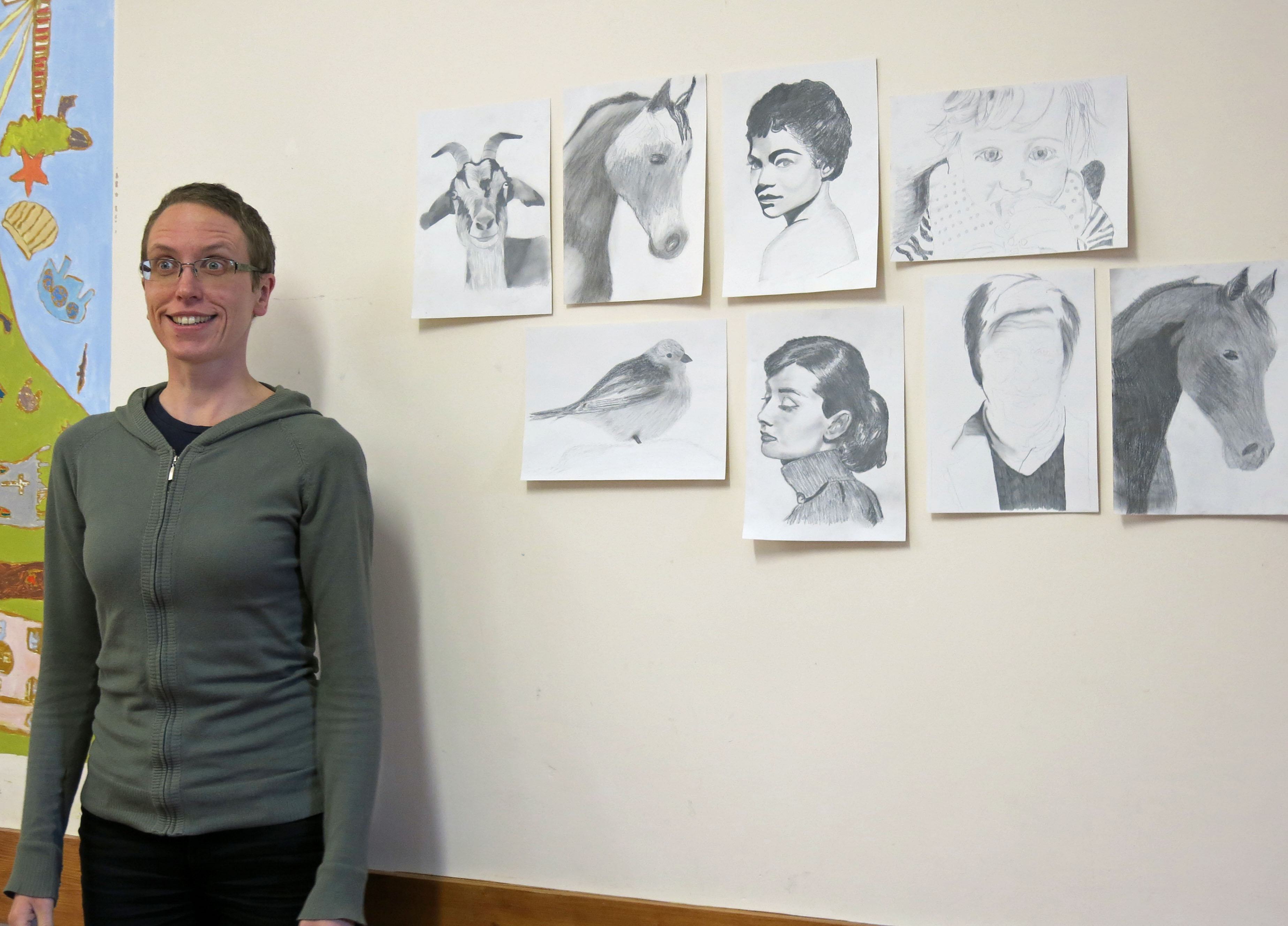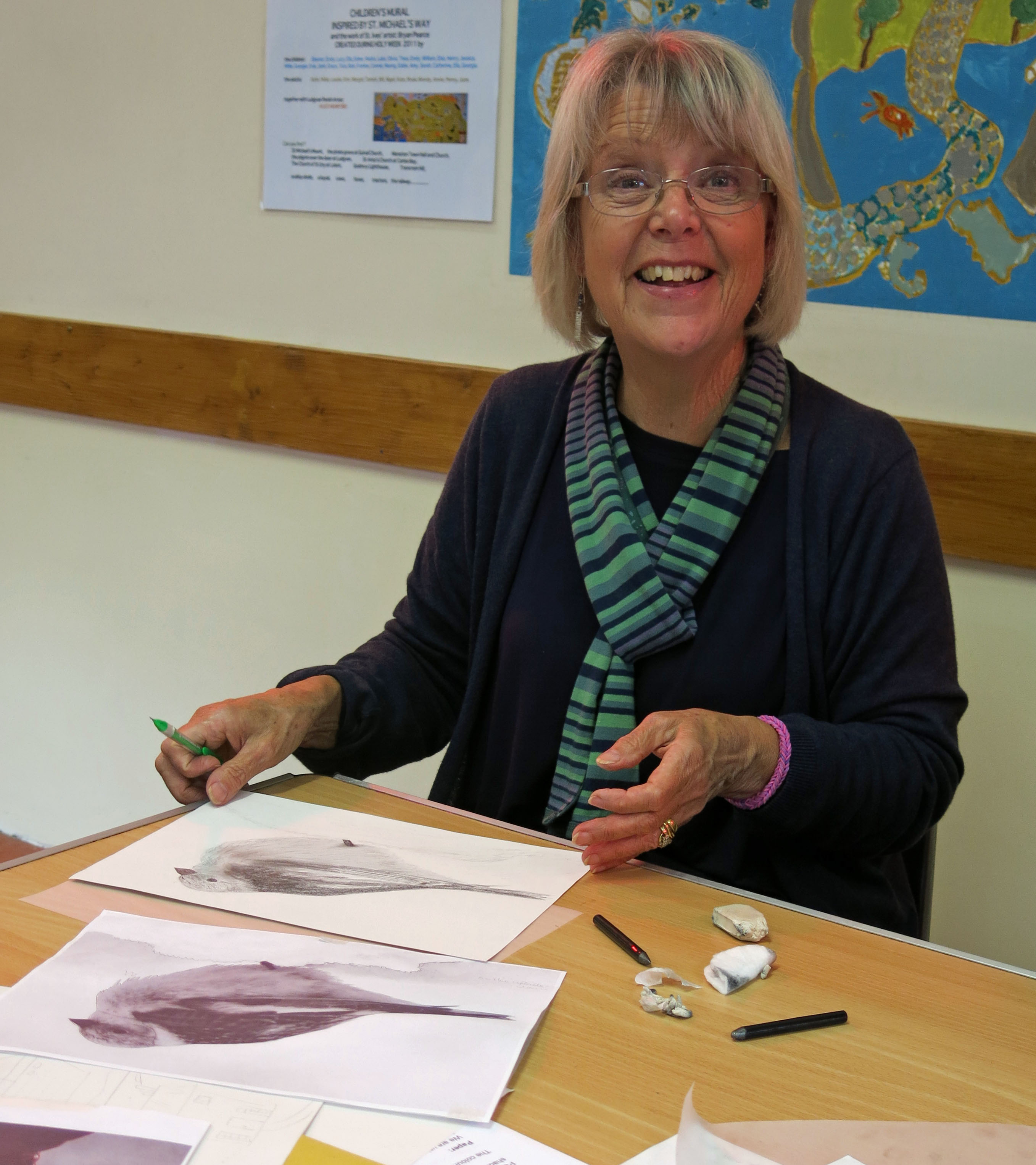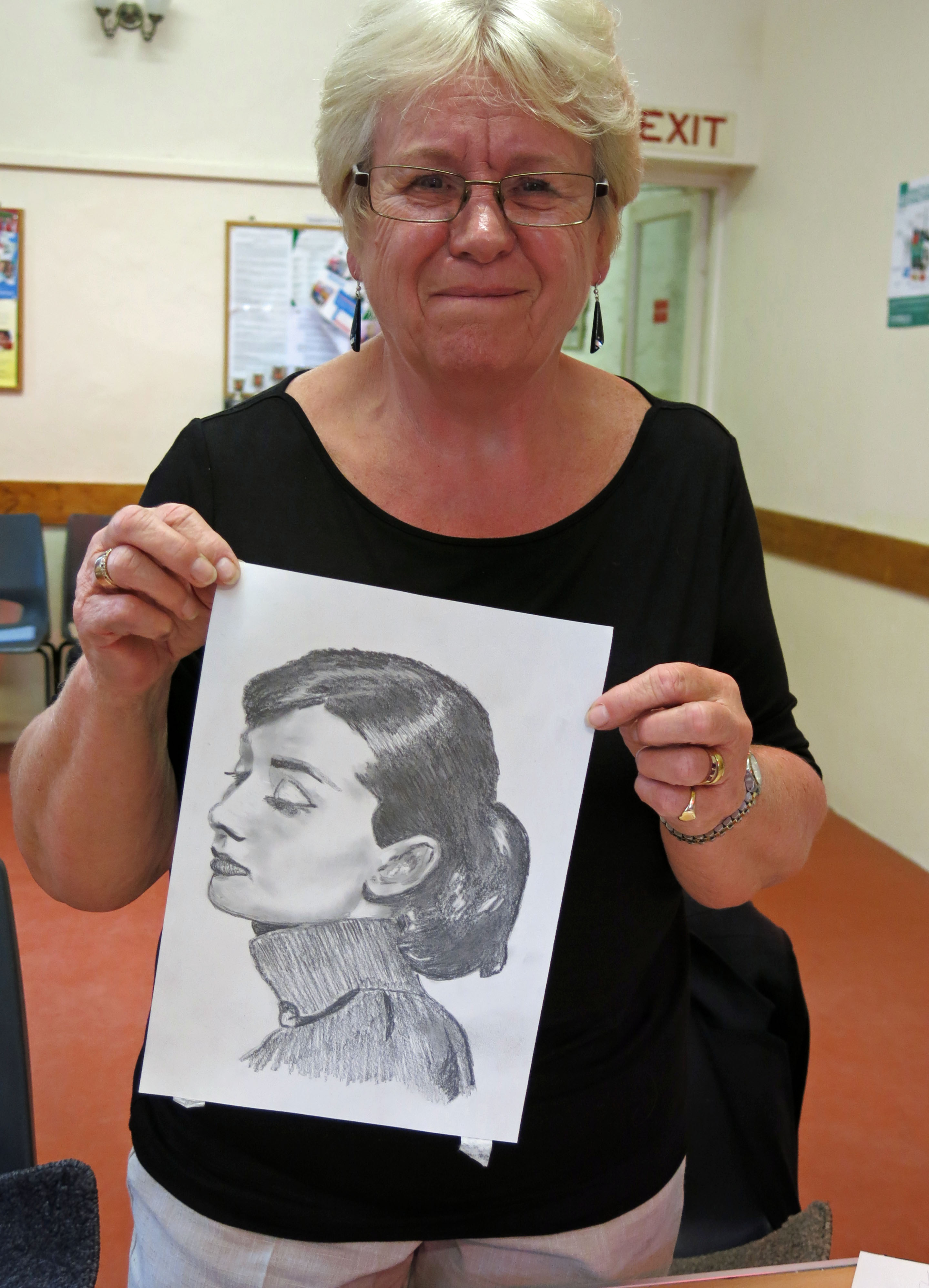 Today eight of us met at the Murley Hall for a day’s instruction with portraiture artist Tamsin Dearing. Tamsin had promised that she could teach anyone to draw, but I must admit some of us were a bit sceptical!