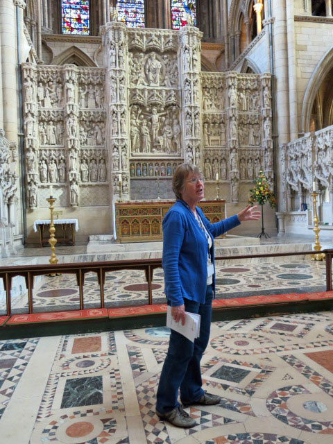 Following the recital, we were given a wonderful tour of the Cathedral. Our guide, Pam, told us all sorts of things we’d never known about the Cathedral. We explored the old St Mary’s Church south aisle (the ‘church within a church’); we learned about the two granite foundation stones laid when the Cathedral was being built, one still known as the Pillar of Faith; and we heard all about Bishop Benson, the Cathedral’s first bishop (and father of author E.F. Benson!).