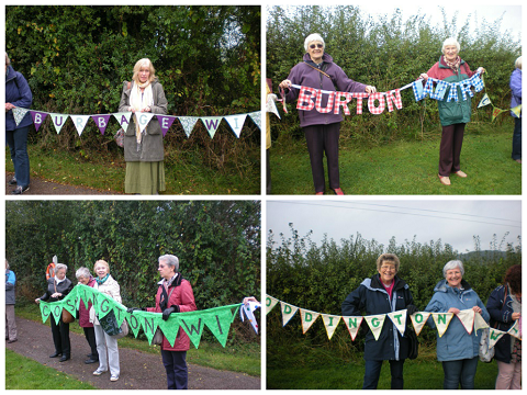 At Foxton Locks, there were 112 WIs representing the 144 WIs in the Leicestershire & Rutland Federation. WI members made bunting and joined it together along the flight of locks, holding it up between each WI for 300 metres. Some very ingenious bunting was produced with bras and knickers, while others were beautifully embroidered with colourful Institute names.