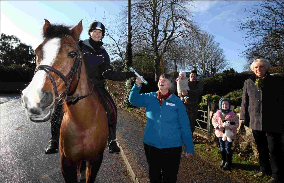 Hampshire WI member Zoe Stanley brings the baton to West Tytherley Primary School on horseback.The baton made its way from Twyford into Winchester city centre on Friday, with a torch-lit procession taking place down to the High Street to the Guildhall.