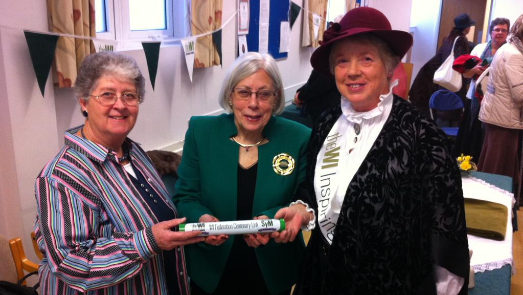 The baton was welcomed to Hampshire with a hand-off from the West Sussex Federation. Click here to listen to a BBC clip of the Mayor of Havant welcoming the baton to Hampshire, and then to Hampshire Federation baton coordinator Ros Cooper who describes the baton as “terribly unexciting, really”!