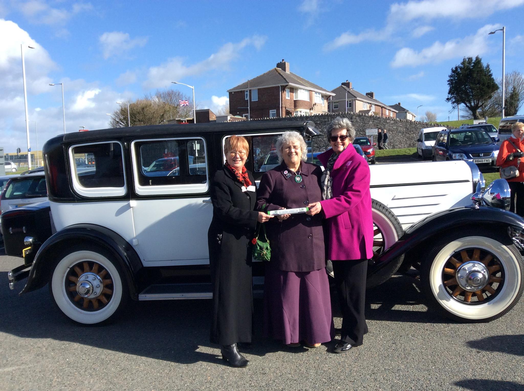 Here’s the baton in the grasp of Devon Federation Chairman Elma Blackmore, here flanked by her two vices Julie Ayre and Angie Williams.