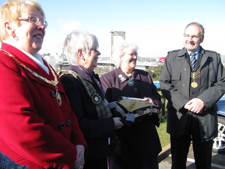 Our own former Federation Chairman Kathy Reed handed over the baton at the Tamar Bridge in the presence of Councillor Jean Dent, Mayor of Saltash, and Councillor Michael Fox, Lord Mayor of Plymouth.