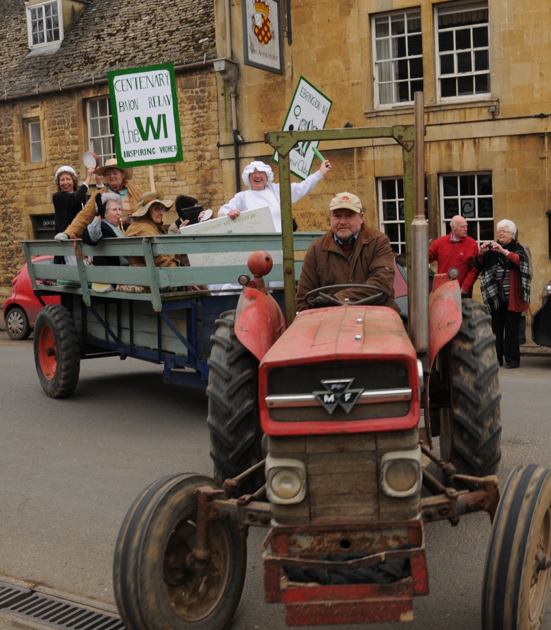 Ebrington WI members dressed in period style and then set off through the village to Chipping Campden in a vintage tractor and trailer:
