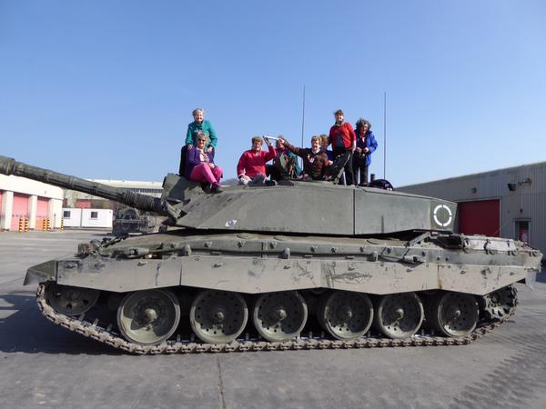 The baton also visited Salisbury Plain with Wiltshire Federation Chairman Isobel Acott and other WI members. There, they bravely sat atop a Challenger tank!