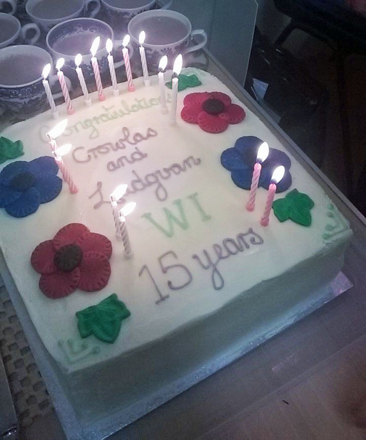 Crowlas and Ludgvan WI was founded on 27 April 2000 which makes this our 15th birthday! To honour the occasion, after the meeting this week, rather than our usual biscuits, we were treated to a very special birthday cake. A huge thank you goes to Val Puddiphatt for making the delicious cake which was enjoyed by all.