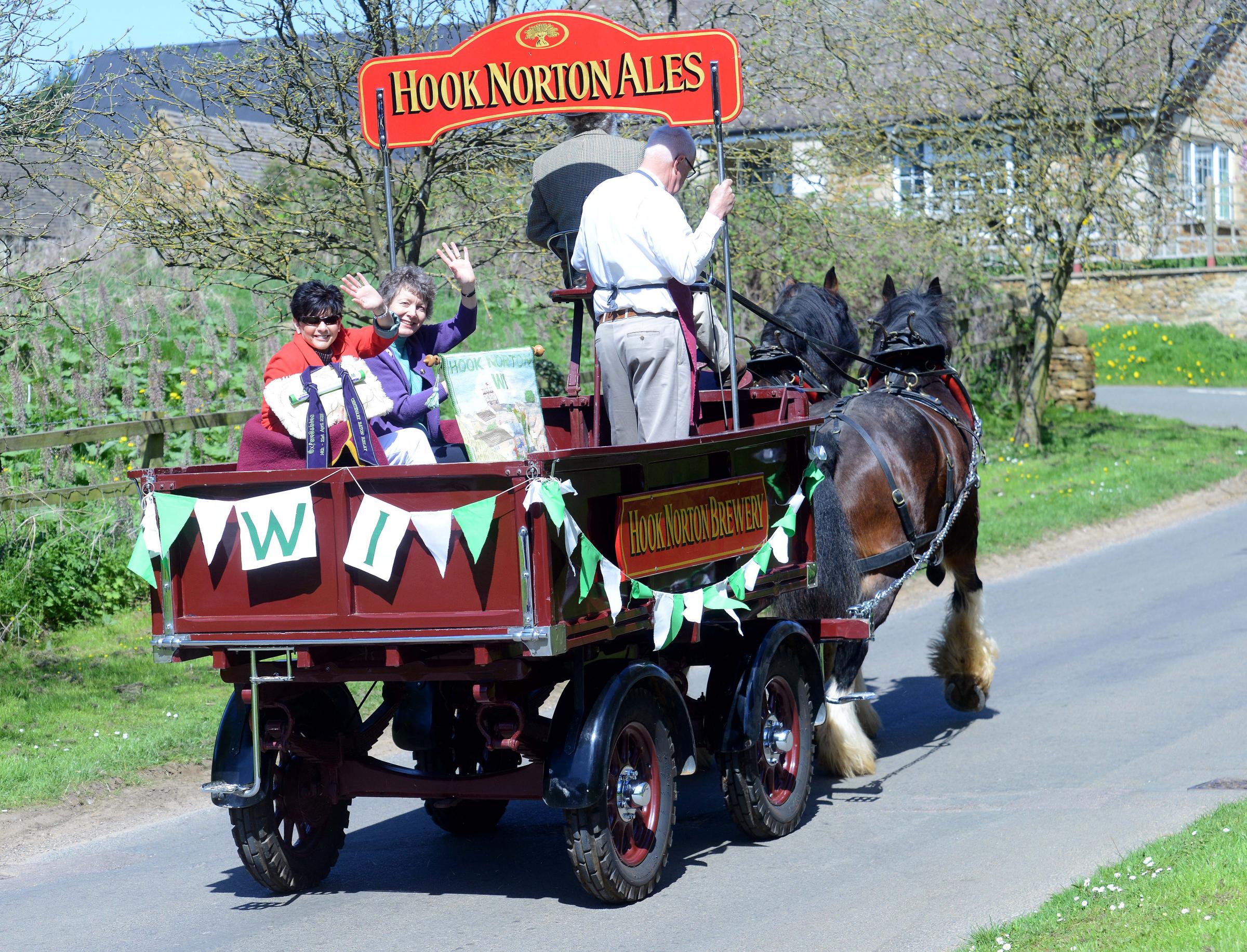 The ladies of Oxfordshire have had great fun celebrating with the centenary baton, as it crossed the county by boat, horse and cart, vintage MG and fire engine.