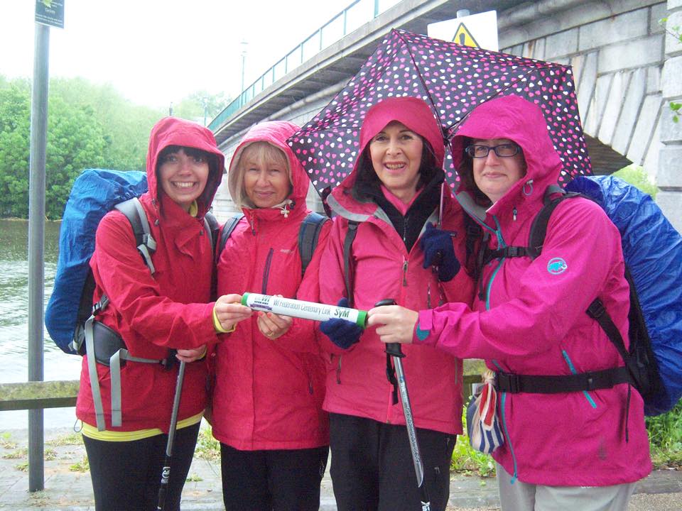 … and posed for a photo with the baton on a rainy day at Staines Bridge.