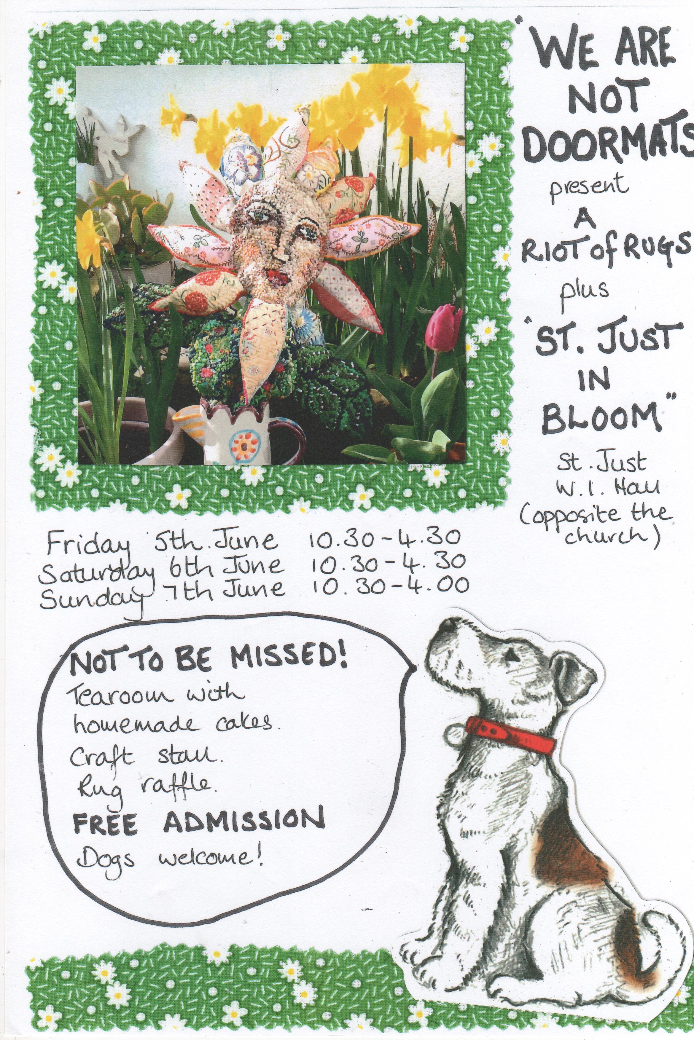 As well as the rugs, you’ll be able to see St Just in bloom, and enjoy some delicious homemade cake. There will also be a craft stall. It all happens at St Just WI Hall, Friday through Sunday.