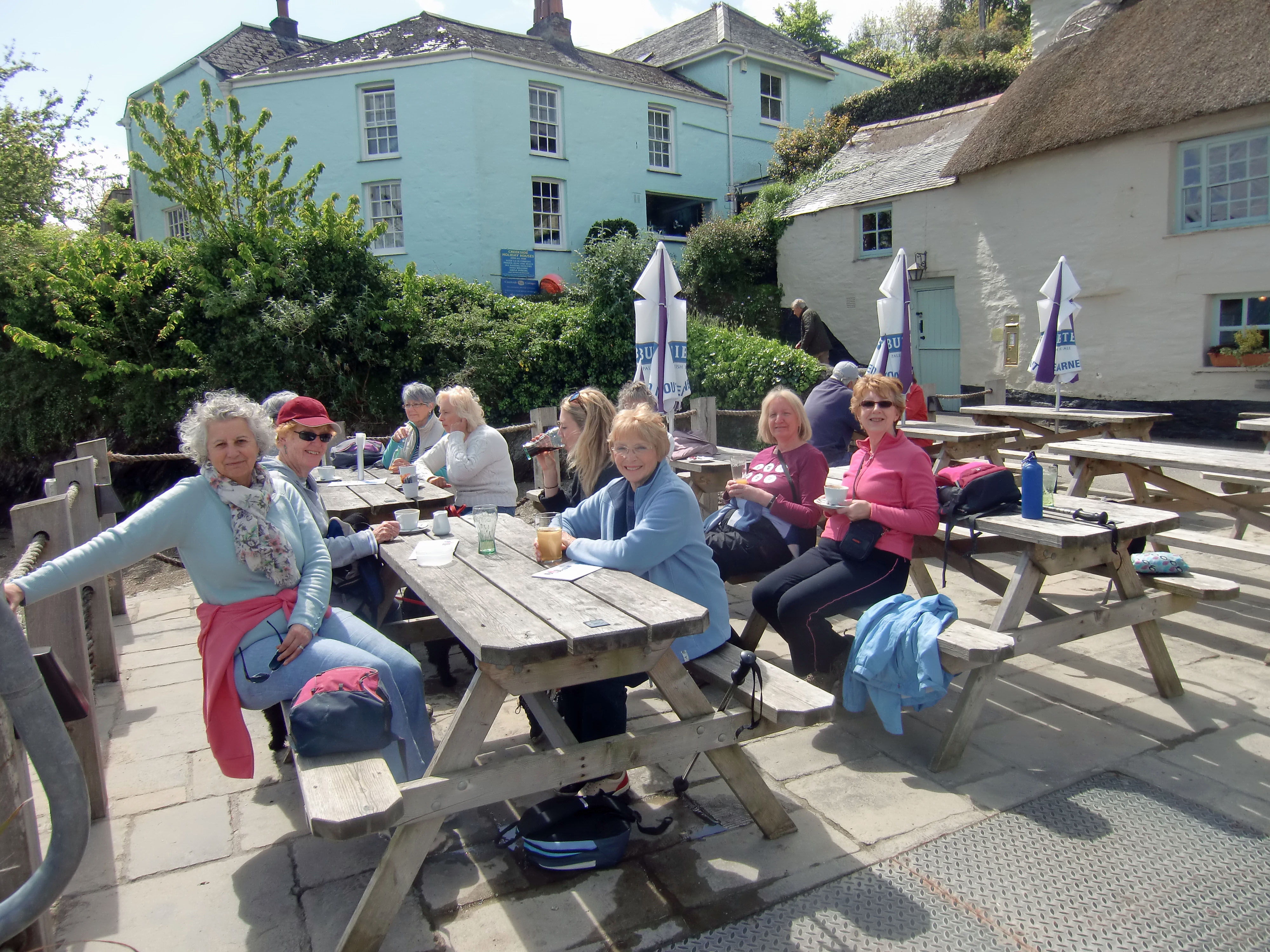 The woods were looking their best – full of various wild flowers and even a small patch of wild orchids. The path followed the river with lovely views across to Restronguet Point and we eventually arrived at the historic Pandora Inn where we enjoyed a coffee break.