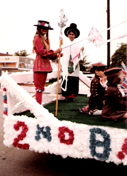 Helen Kestle also remembers dressing up and joining the parade on a float at the Blue Heron Fair in Barrhead, Albert, Canada. This particular year, the theme was The British Isles: