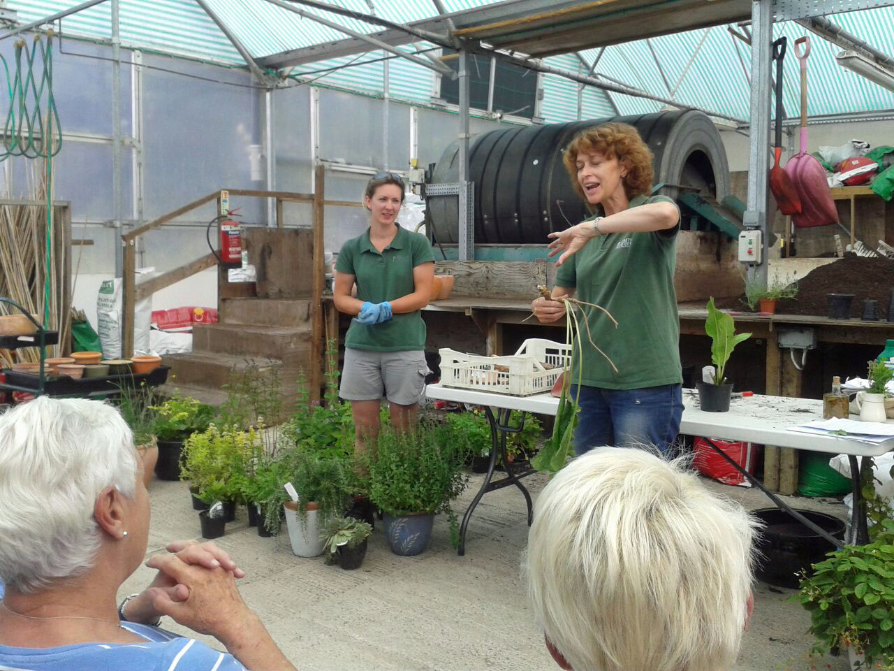 They were welcomed by the owners Karen and Mark and served lovely fresh coffee and homemade biscuits. They then split into two groups and went to the potting shed where there was a beautiful display of herbs with which Karen and Claire (the young woman in charge of the herbs section) described a variety of potting options, explaining the herbs’ uses and how to keep them at their best.