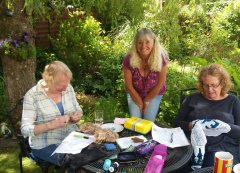 Flying Fingers June Meeting June 14, 2017 crowlasludgvanwi Our Flying Fingers Stitch and Chat Group made the most of the lovely June sunshine and met in the garden at Val’s house this month. Next month’s meeting will be at Gail’s on Tuesday 11th July at 10.00am. Contact Beth for more details. Outdoor Crafting Gail does some knitting Share this: Click to share on Facebook (Opens in new window) Facebook Click to email a link to a friend (Opens in new window) Email Related Published by crowlasludgvanwi View all posts by crowlasludgvanwi