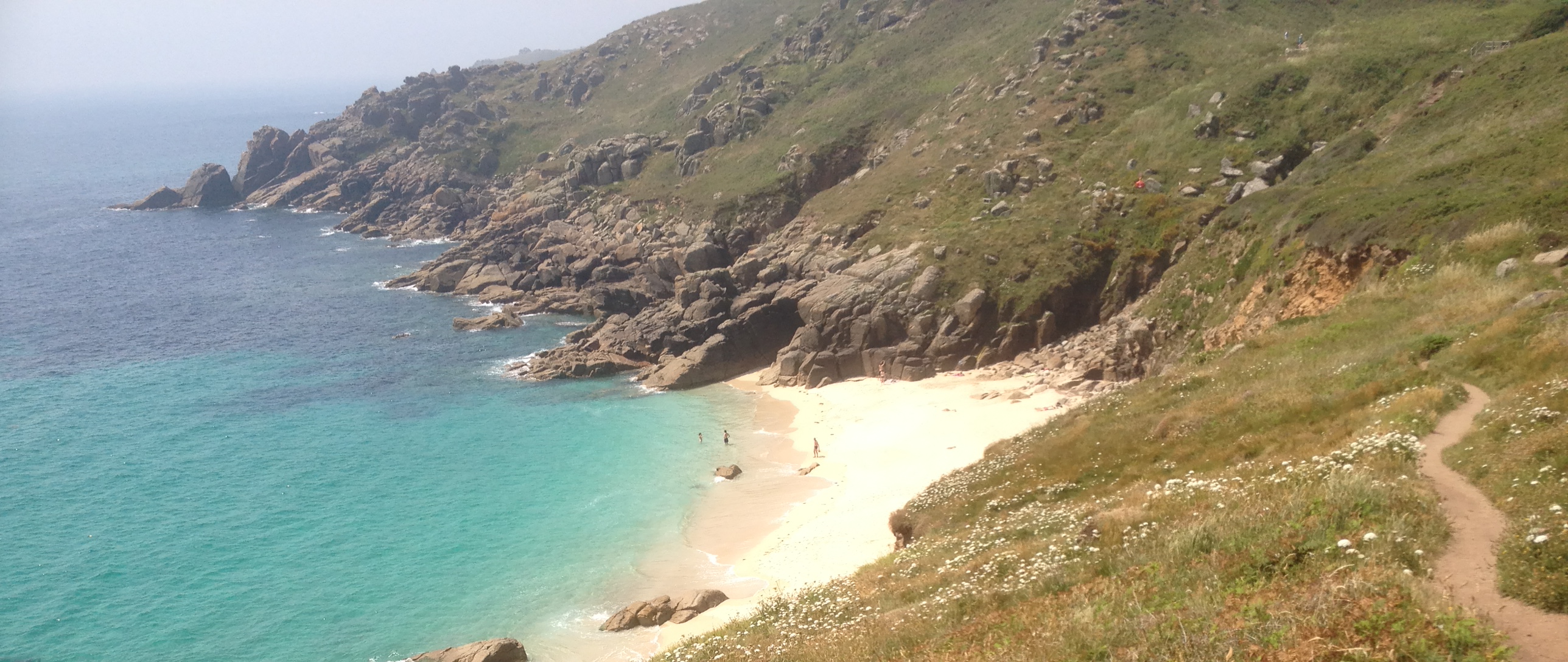 Our walk this month was mainly along the coastal foot path from Porthcuno to Gwennap Head. The sea was calm, the beautiful sandy coves inviting, the granite cliffs a challenge and the weather perfect.