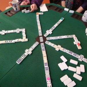 The Mexican Train! This new game has become a firm favourite at the monthly Board Games afternoon. Based on a 12 spot set of dominoes it is easy to learn and can be played by complete beginners and more expert players alongside. Why not come along to the next event on Saturday 13th April 2-4 pm and give it a go?