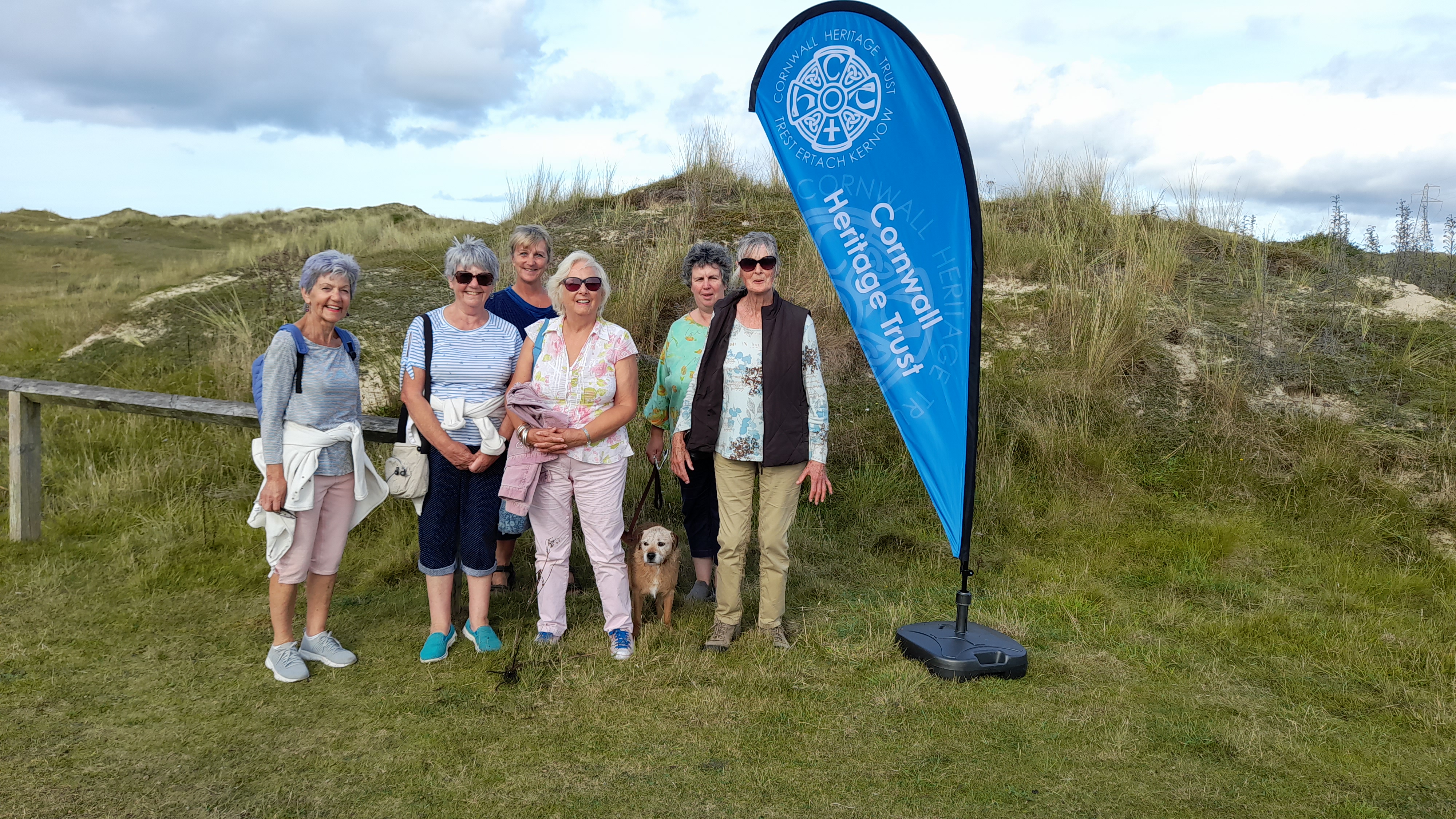 This talk was followed up by a guided walk of the Dynamite works at Upton Towans, Hayle. The landscape has been transformed by safety banks made of sand, that were built separately around the various workshops. There is little evidence of any remaining structures. Other than the foundations for the acid works/electrics etc, everything was demolished. These sand barriers are now covered in grass and weeds and stand at 2 metres high. A train platform is still very much in evidence as a train ran down from the Towans to the harbour carrying the dynamite and cordite; supplies were also taken to the site by train. The safety record of the site was quite good considering they were dealing with such dangerous substances – only a handful of people were killed. There are numerous walks in this area with views across to Carbis Bay and St. Ives. It was a lovely sunny day which made for a very pleasant afternoon.