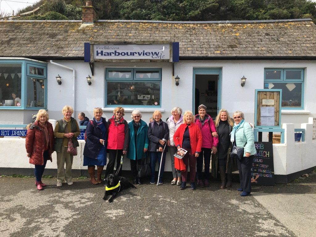 There are so many different clubs and activities for CLWI members every month that even as president I don’t always make it to them all but this month it was my great pleasure to join the coffee beans group in Porthleven. With my mother and her guide dog, we met the members who had for a change travelled on the bus together. We started with a walk around the town to pick the cafe with the best coffee and seating for us all Harbourview then provided the opportunity for a lively chat whilst drinking our coffee and eating delicious cakes. Most members followed this with a further walk around the shops and sites before meeting up again for some lunch. For myself, a trip to Curio Gin and an essential purchase rounded off a great meet up. This was a lovely way to spend a morning and I will certainly be joining them again.