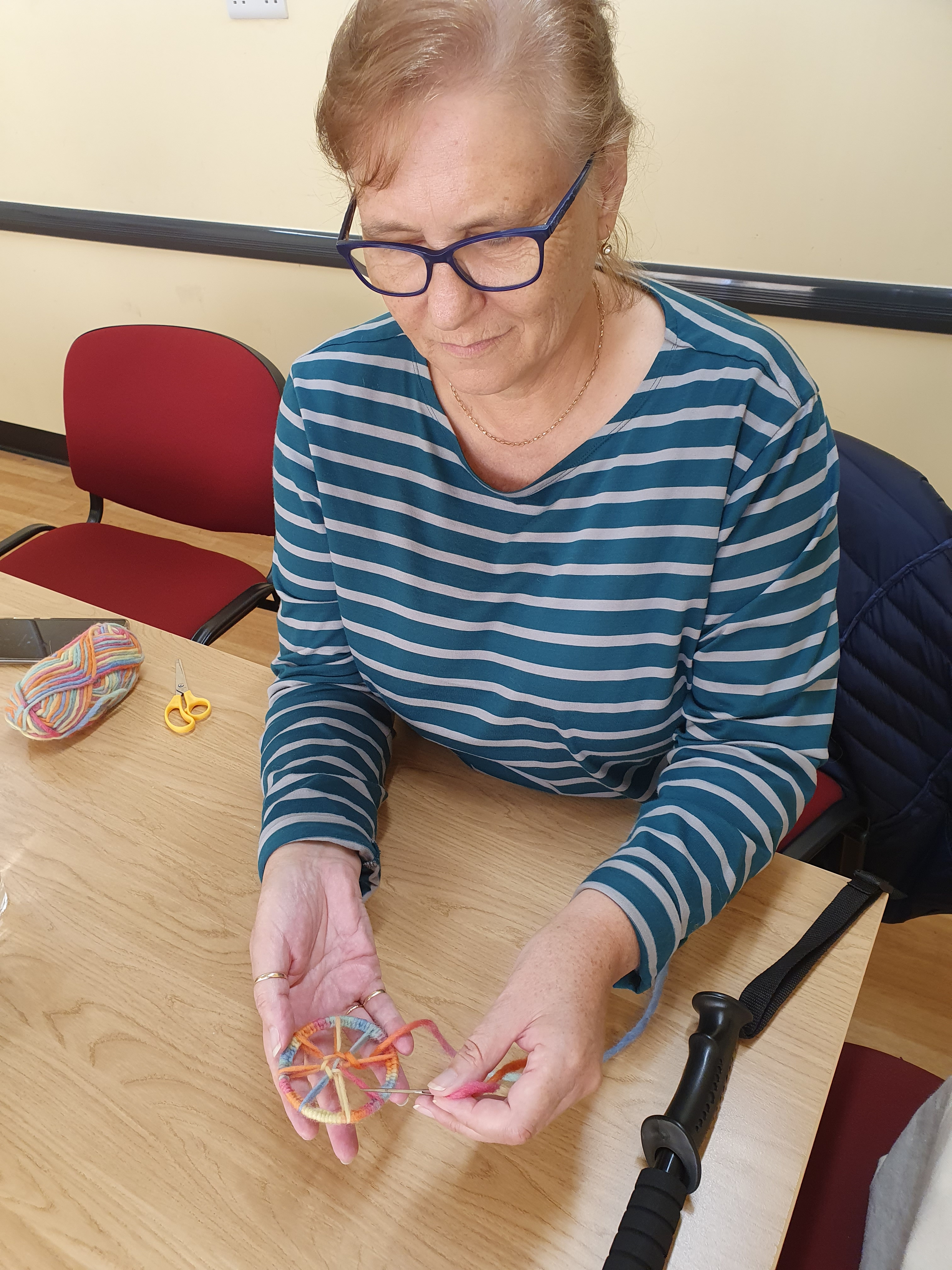 In this month’s crafting session members learned how to make traditional Dorset Buttons. These pretty handmade buttons are traditionally made with a process of thread winding and sewing, and have been made in the County of Dorset as long ago as the 1600’s. Ram’s horns were used as the original ring base, wrapped with linen yarns for higher quality clothing and locally produced wool yarn for a more basic button. In 2017 the Heritage Crafts Association included Button Making in their list of endangered heritage crafts.