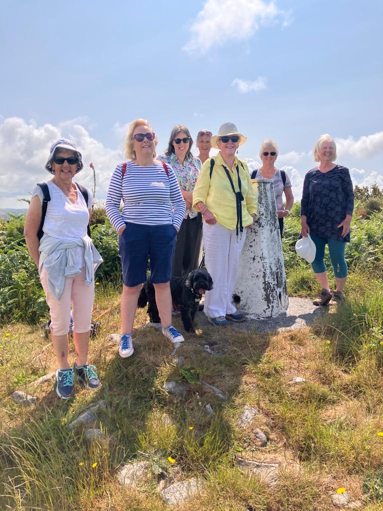 We began our walk In Balwest and made our way up the path to Tregonning Hill from where we were rewarded with stunning views over Mounts Bay, The Lizard and beyond. Centuries of history were laid out before us: William Cookworthy and China Clay; William Argall and brick making; the Preaching Pit and the Signal House from where Helston and the satellite dishes at Goonhilly could be seen. Following our descent from the hill we enjoyed a delicious lunch at the Garden Kitchen Cafe, Trevena Cross Garden Centre.