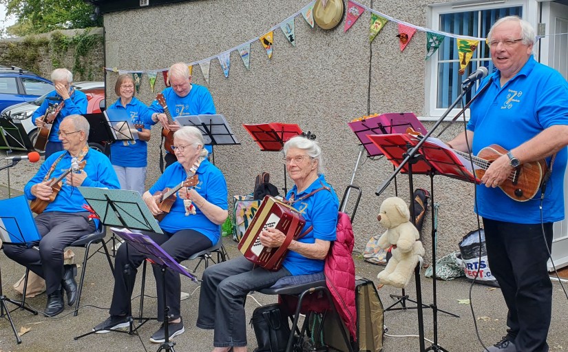 The Recycled Ukelele band provided wonderful entertainment for our August Meeting. It has become something of a tradition to do something a little different in August, so the usual evening meeting gave way to a fun afternoon, with a Teddy Bear’s Picnic, both sweet and savoury scones and an array of popular tunes to sing along to.