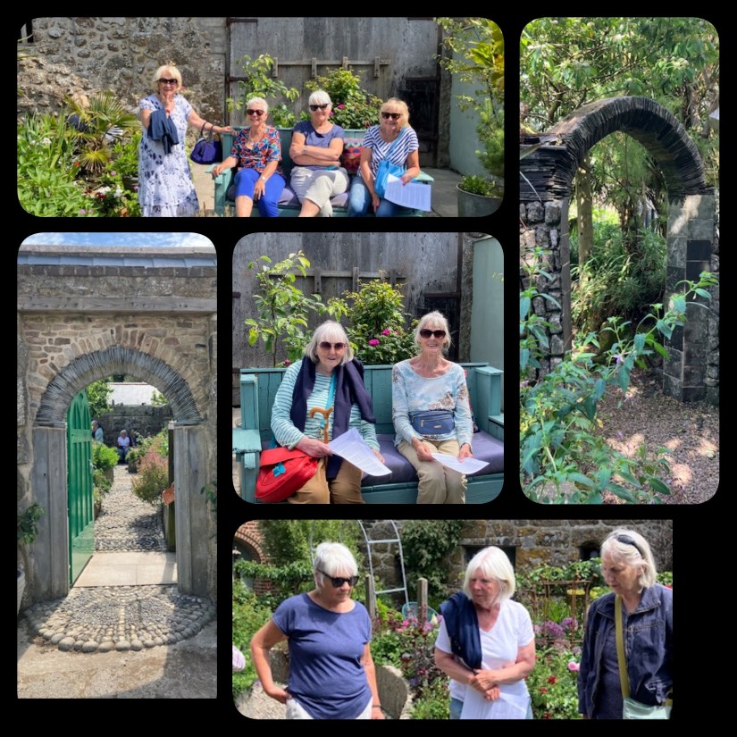 On Thursday, the 20th of June members of Crowlas and Ludgvan WI visited the lovely gardens of Trevilley near Sennen .The gardens are owned by the novelist and screenwriter Patrick Gale and his partner farmer and sculpture Aidan Hicks.The farm has been owned by the Hicks family for some generations.