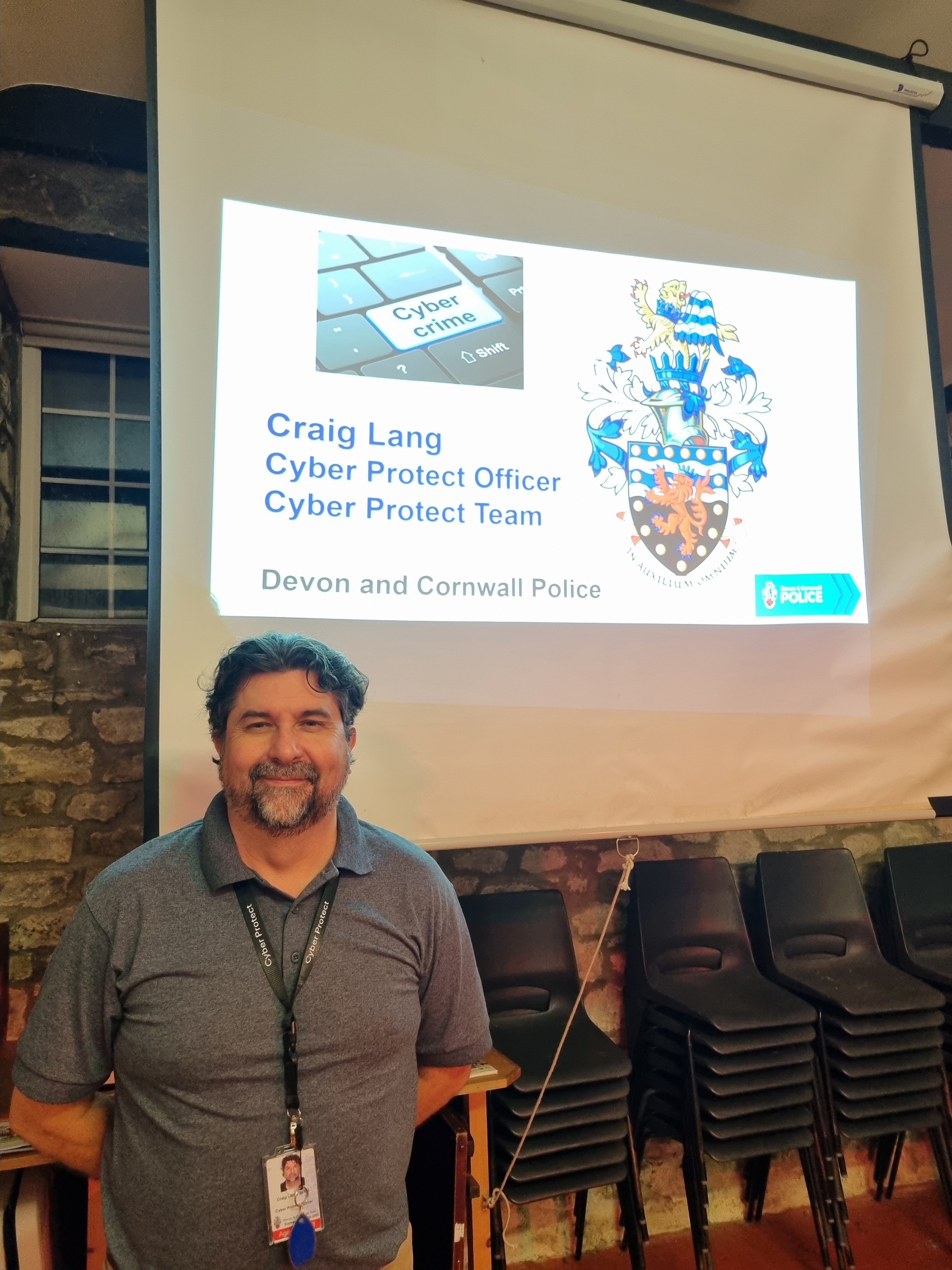 Craig Lang from the Cyber Protect Team at Devon and Cornwall Police was our latest speaker at The Murley Hall. It was an extremely informative session with advice and tips on online safety that could help protect us all from scams, cons and security breaches. Most of all we learned to just stop and think for a moment before clicking or giving away information.