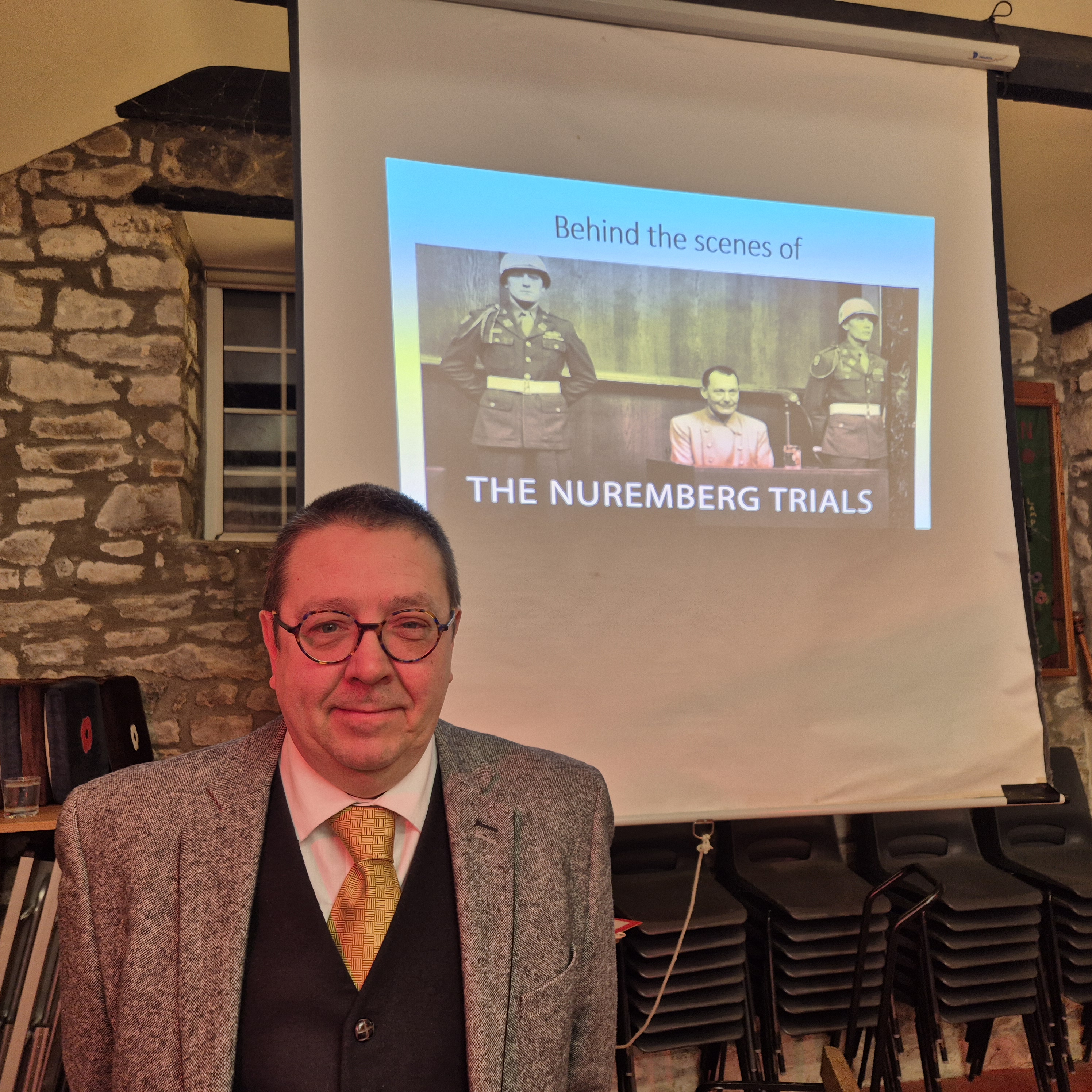 Our speaker for the February Monthly Meeting was Phil Angell. Phil gave an interesting and informative talk about occurrences behind the scenes of the Nuremberg Trials. Phil’s research came, in particular from two sources; he book Nuremberg Diary by Gustav Gilbert and records from the Robert H Jackson Center in Jamestown, New York. With photos and video clips and storiess from some of the lesser known participants and officils, Phil brought an extra dimension and depth to the historical facts that many of us were familiar with.