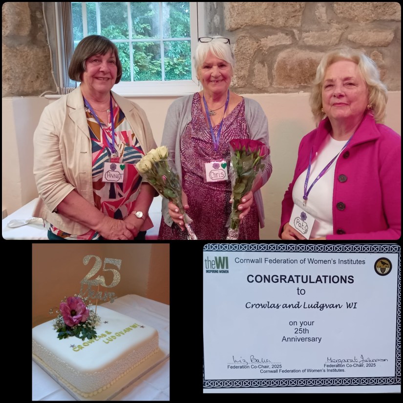 April 2025 marks 25 years since Crowlas and Ludgvan WI was created. In celebration a beautiful cake was made and decorated by two of the founding members, Ann Tilly and Pat Gloyn, shown above with current President Chris Phillips.