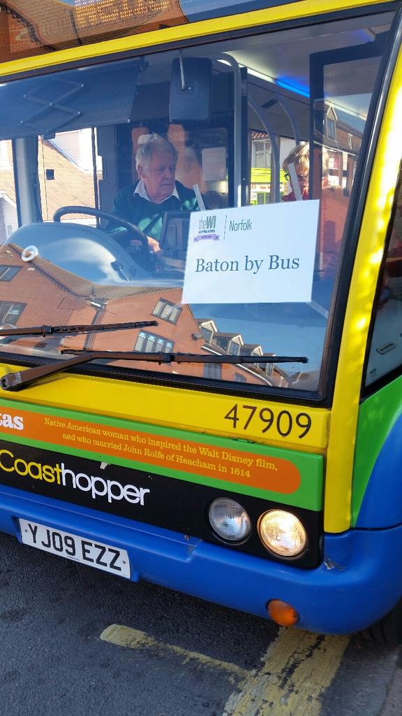 The baton traveled in style from King’s Lynn to Cromer on the Coasthopper bus!
