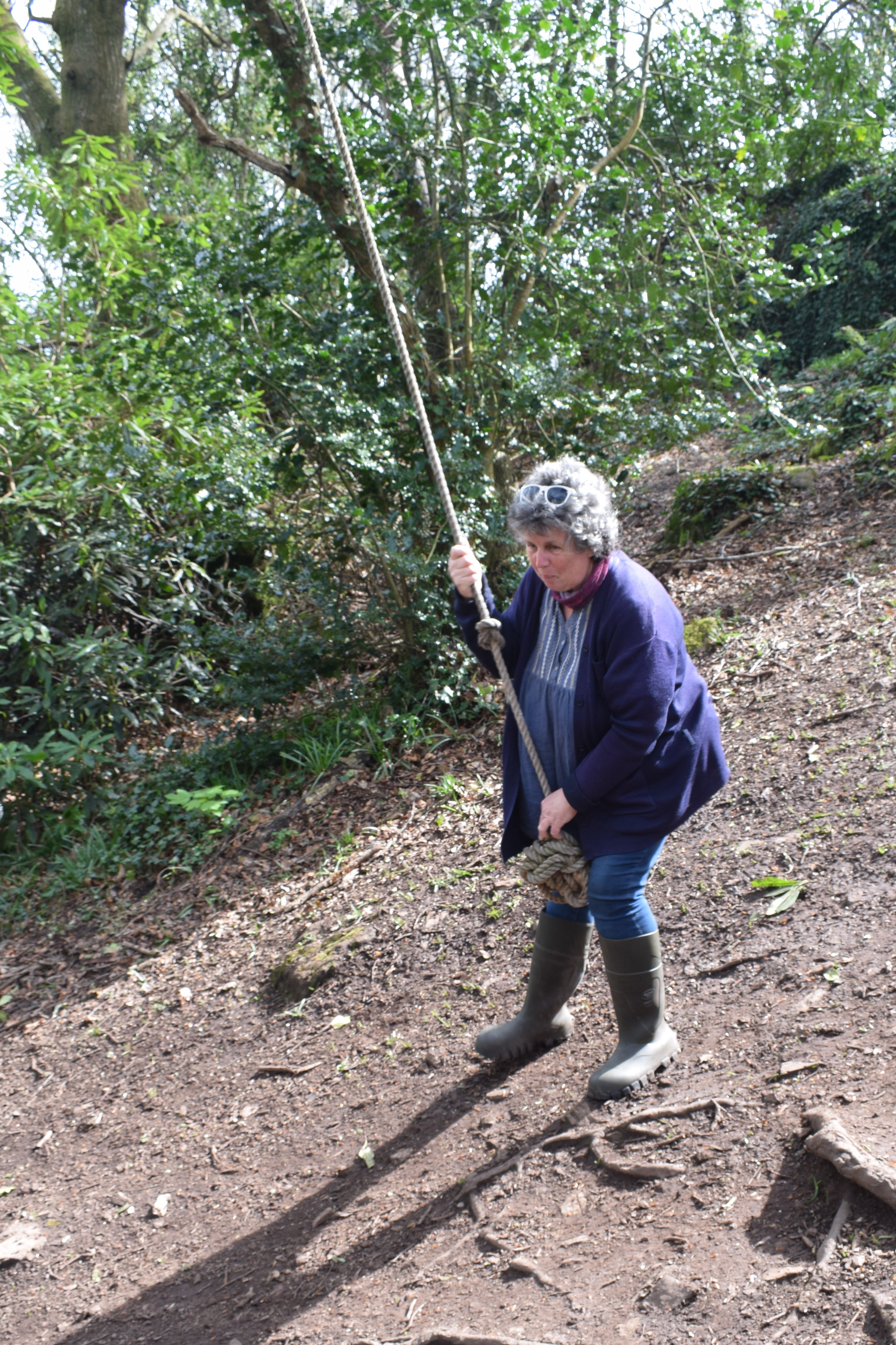 …..you might see our Camera Club, taking photos of the beautiful spring bluebells, wild garlic, and a myriad of textures and colours of spring. Or you might spot Sue having a quick go on the rope swing…..
